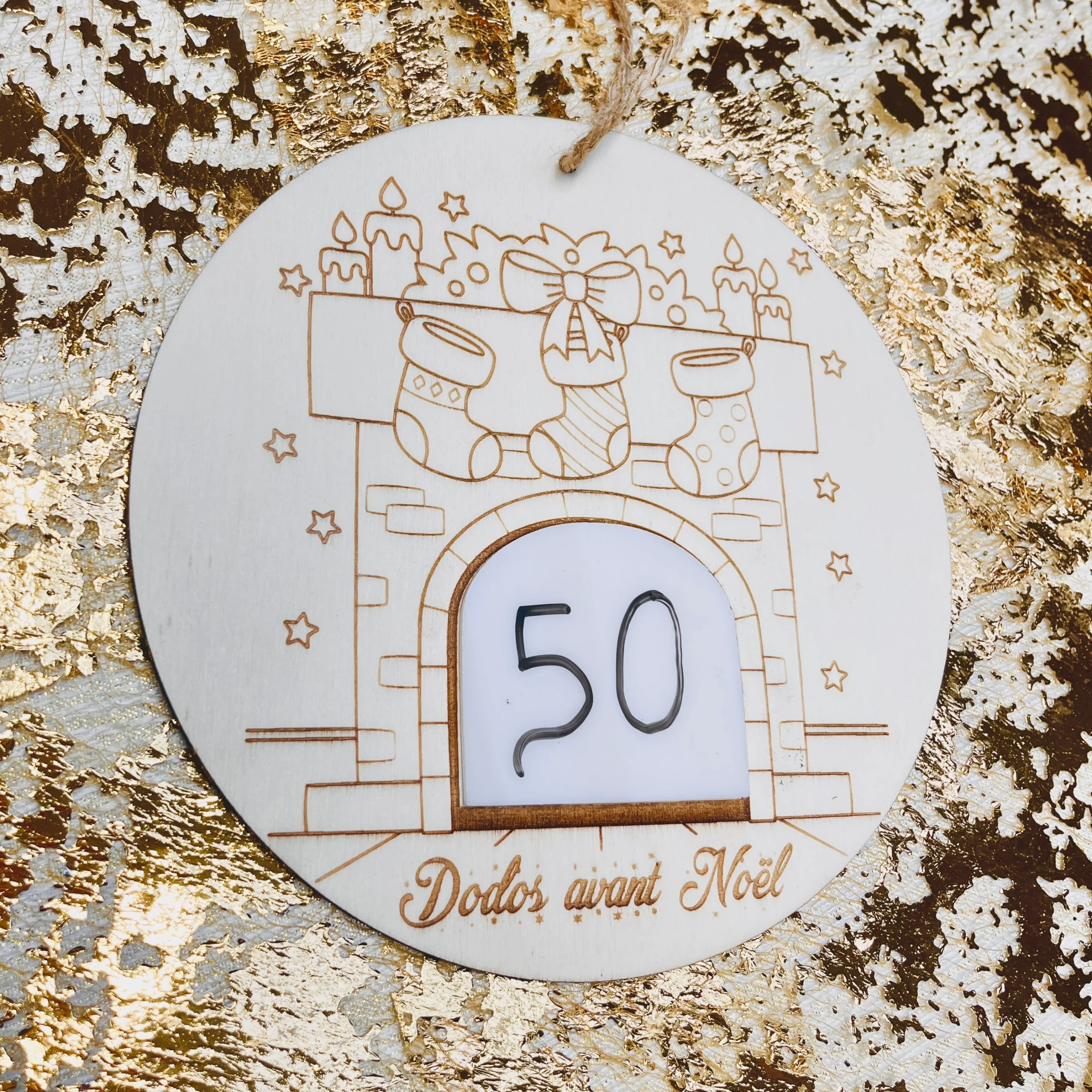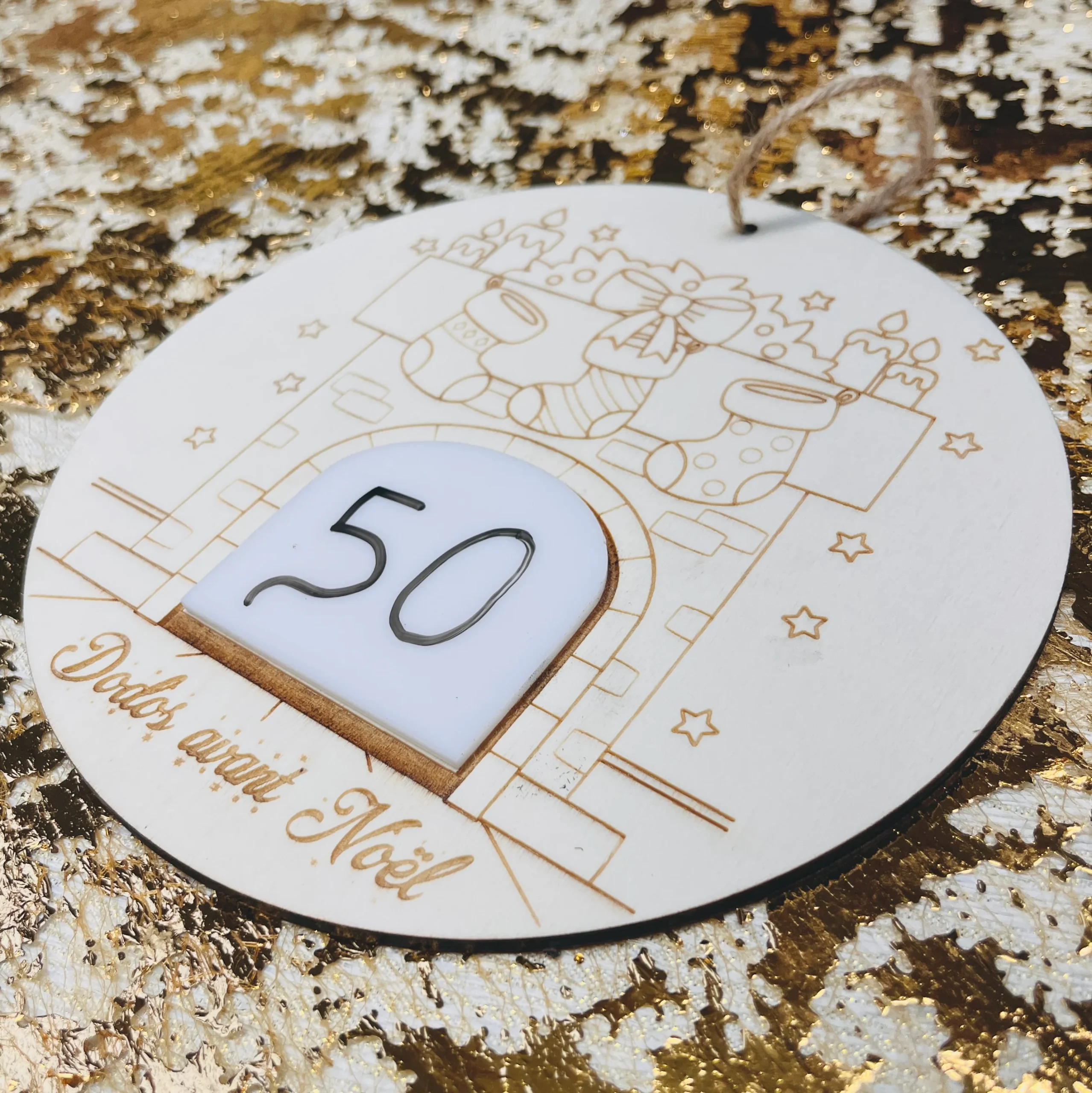 Rond en bois de peuplier 5mm Attache en corde de jute Plaquette en acrylique blanc pour inscrire au feutre ardoise (non inclus) les jours restants Réutilisable Décoration ludique pour apprendre aux enfants la notion du temps pendant les fêtes de Noël. Le bois étant une matière naturelle et vivante des nuances peuvent apparaître sur les […]