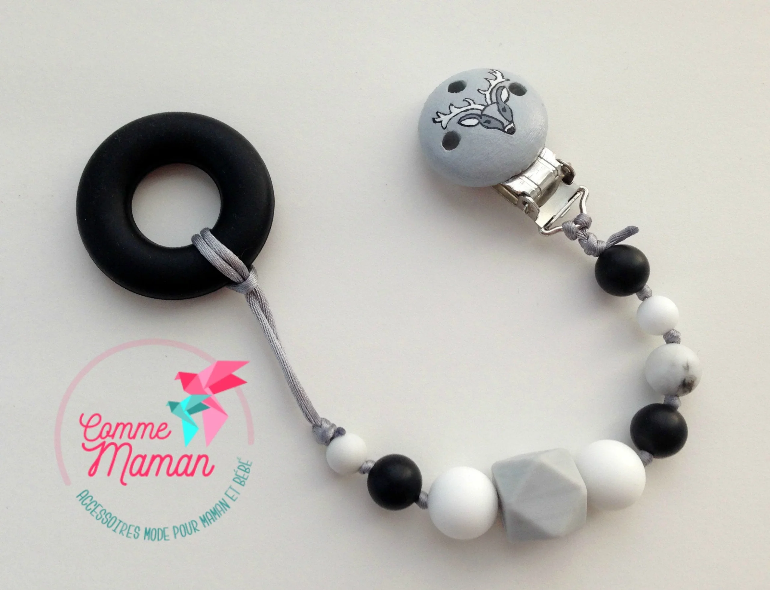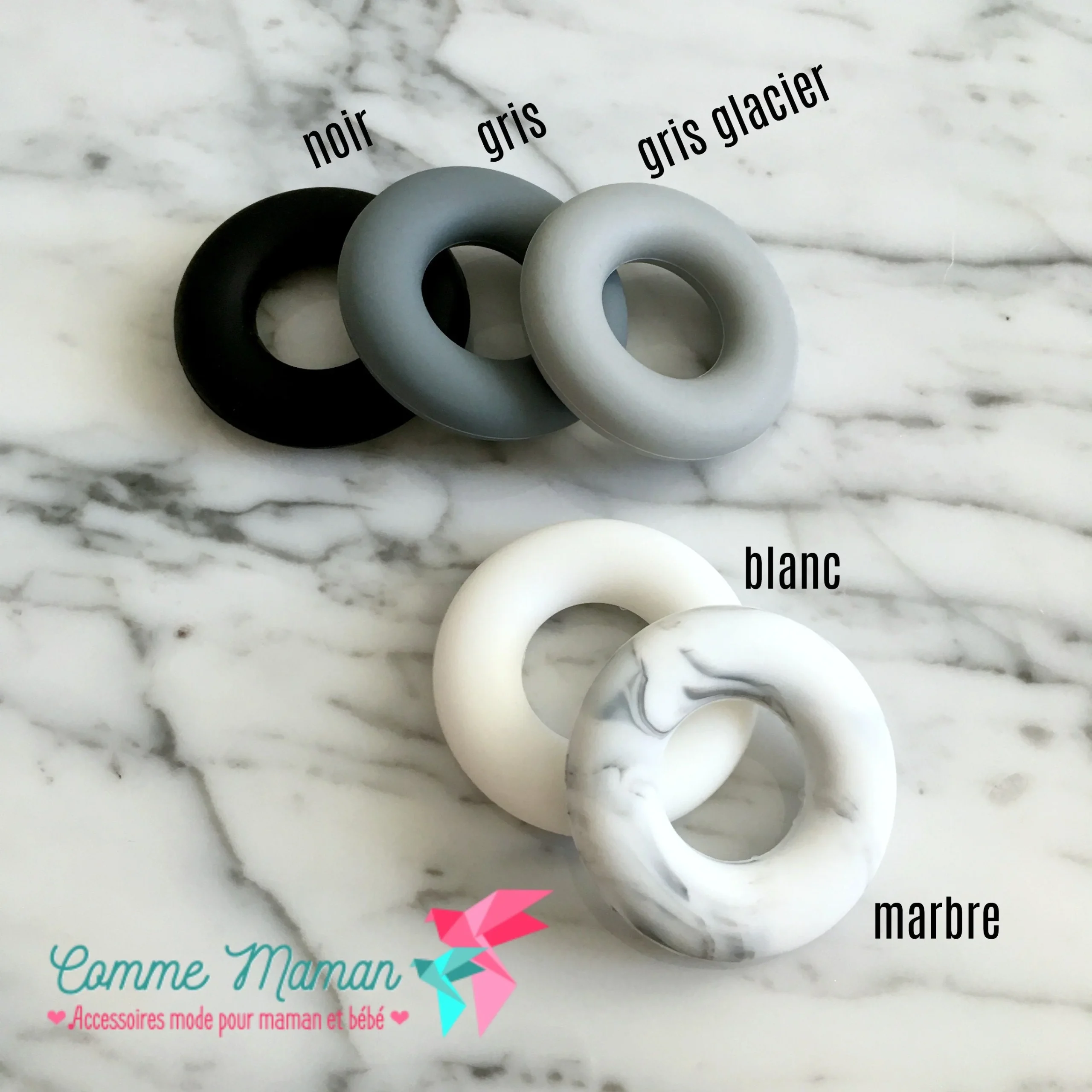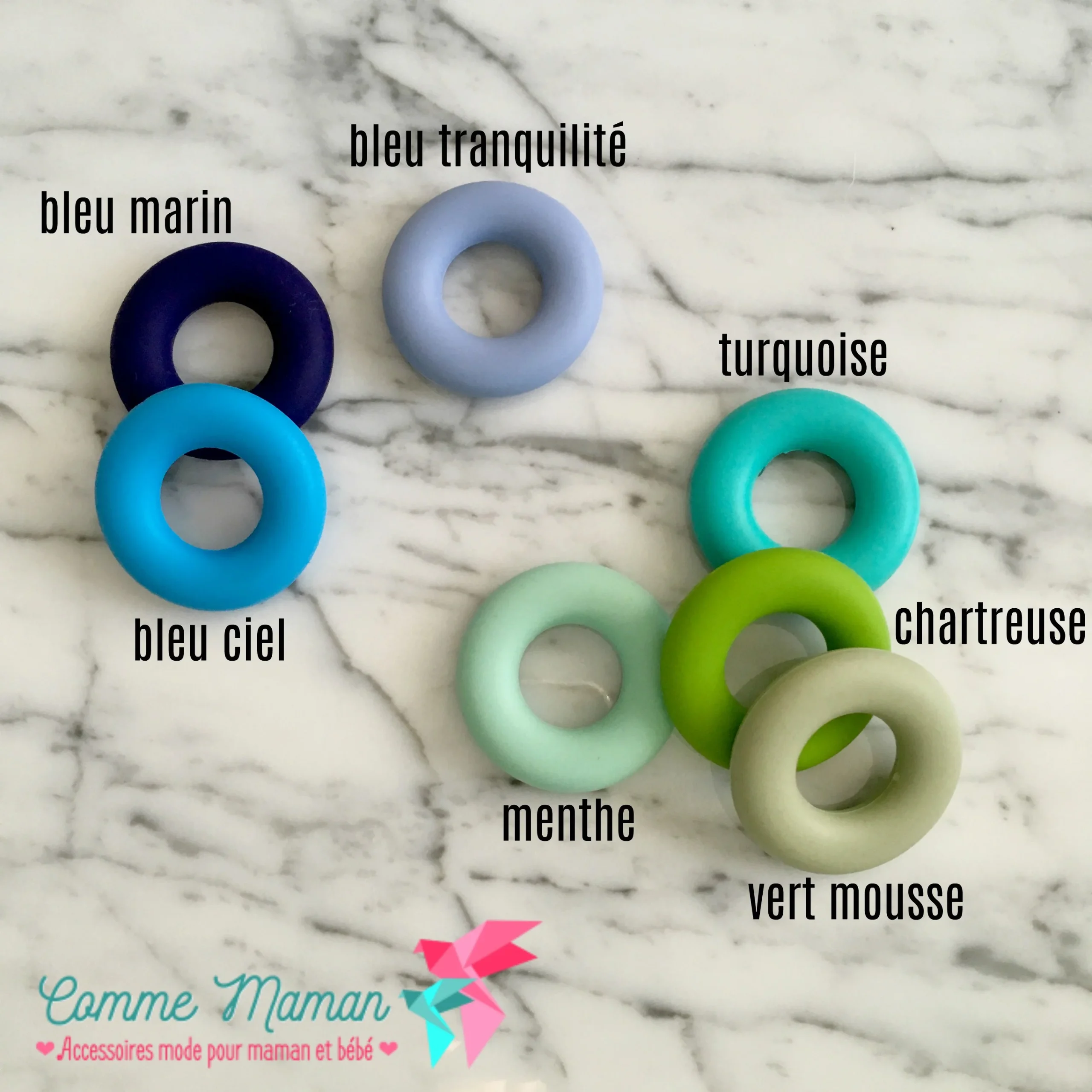 L’anneau de dentition, est le parfait accessoires de dentition a fixé au bout de votre attache-suce, ou sur l’une de nos mini doudou.