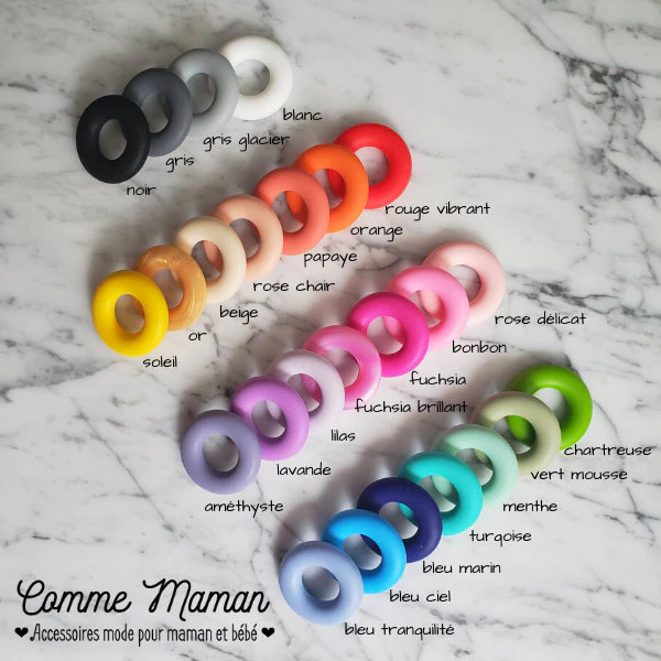 Les anneaux de dentition sont faits de de silicone de qualité, doux, moelleux et résistants, parfaites pour les gencives et les petites dents de votre bébé. Ils sont fait de 100% de silicone alimentaire sans BPA, sans PVC, sans Phtalates, sans plomb, sans mercure et sans cadmium.