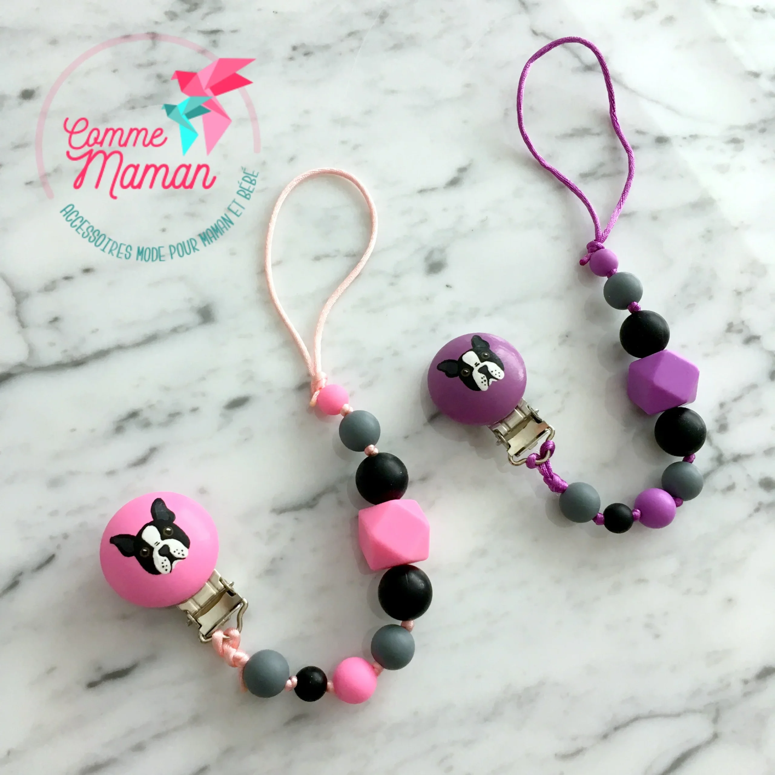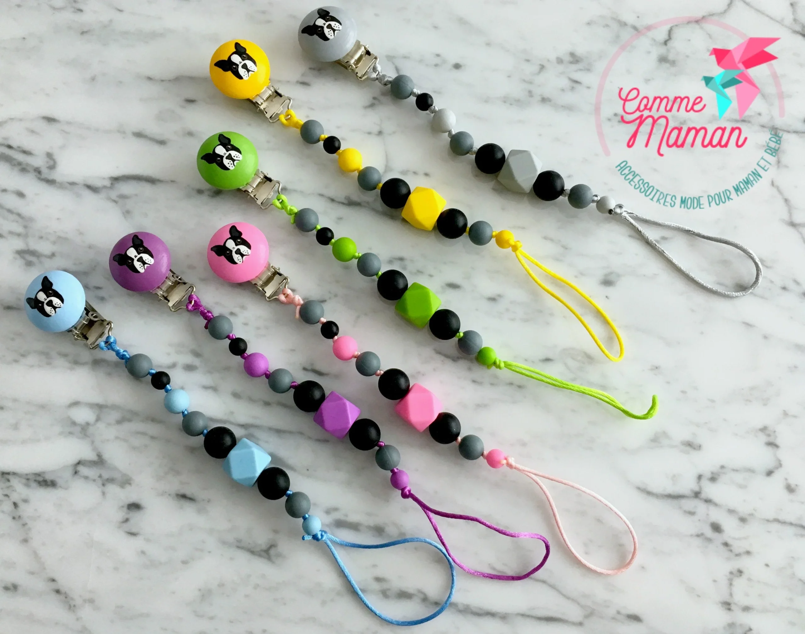 Comme Maman accessoires, vous propose des collections d’attache-suce peint a la main pour bébé. Ils sont élégants, confortables, légers et surtout, sécuritaires. Ils sont faits à la main, avec tout l’amour d’une maman.