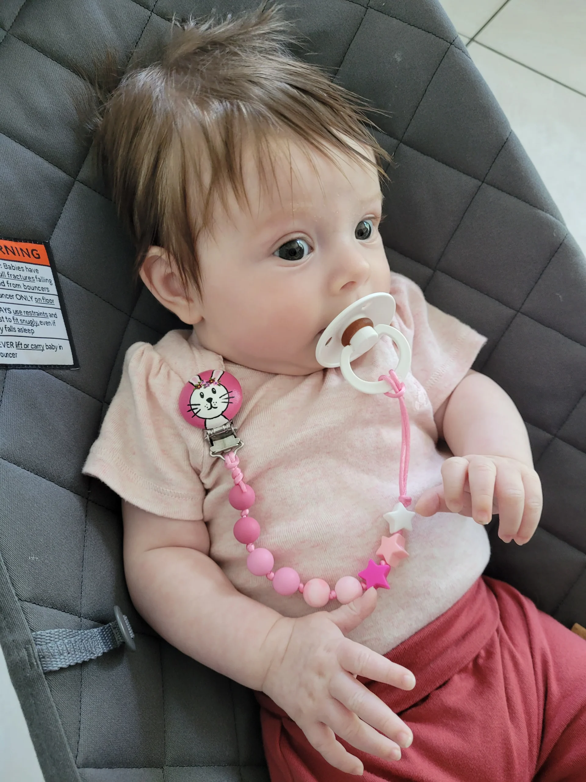 Ne jamais laisser votre enfant seul, sans surveillance avec un de nos accessoires. Inspectez toujours votre attache-suce avant chaque utilisation. Au moindre signe d’usure, veuillez cesser l’utilisation du produit et le remplacer.