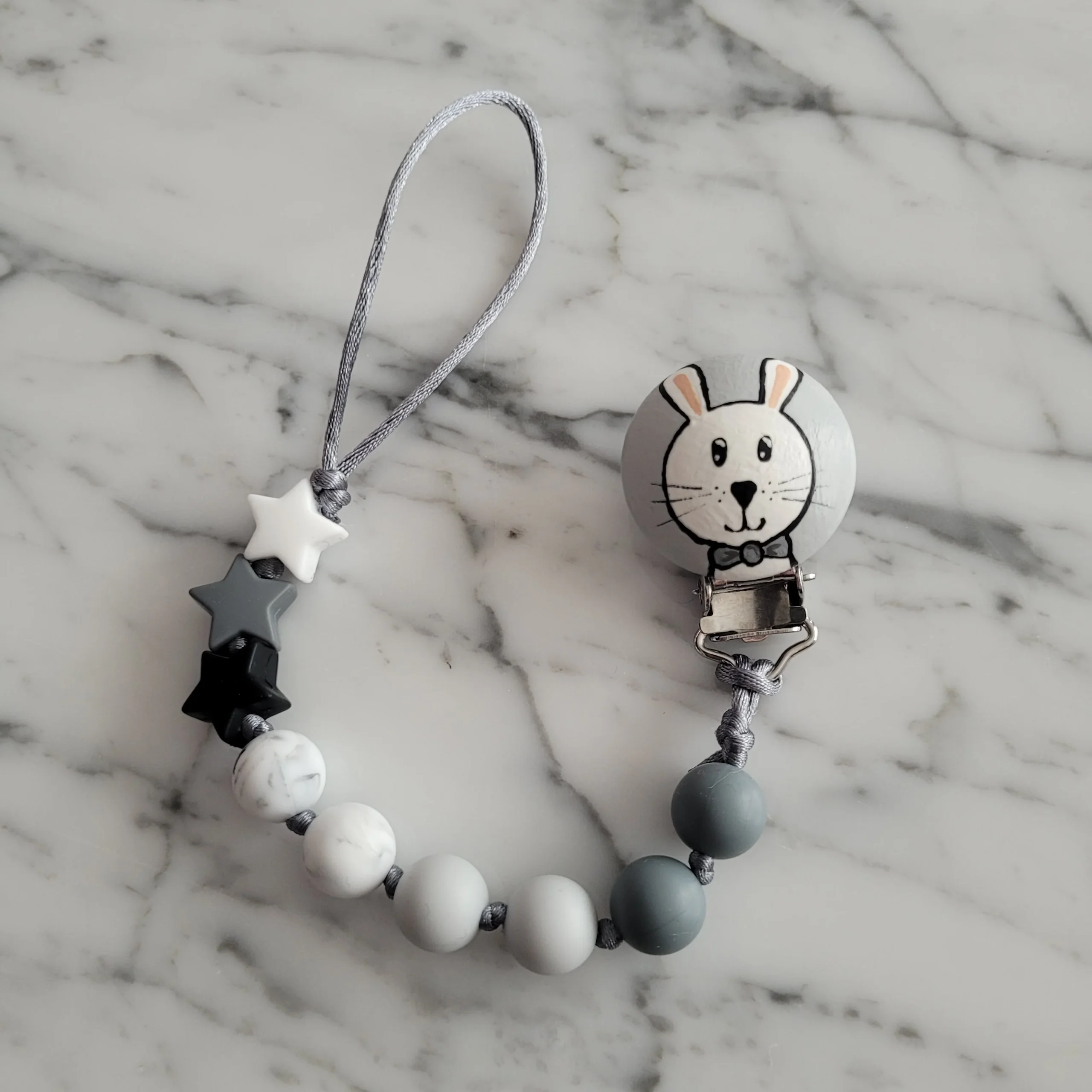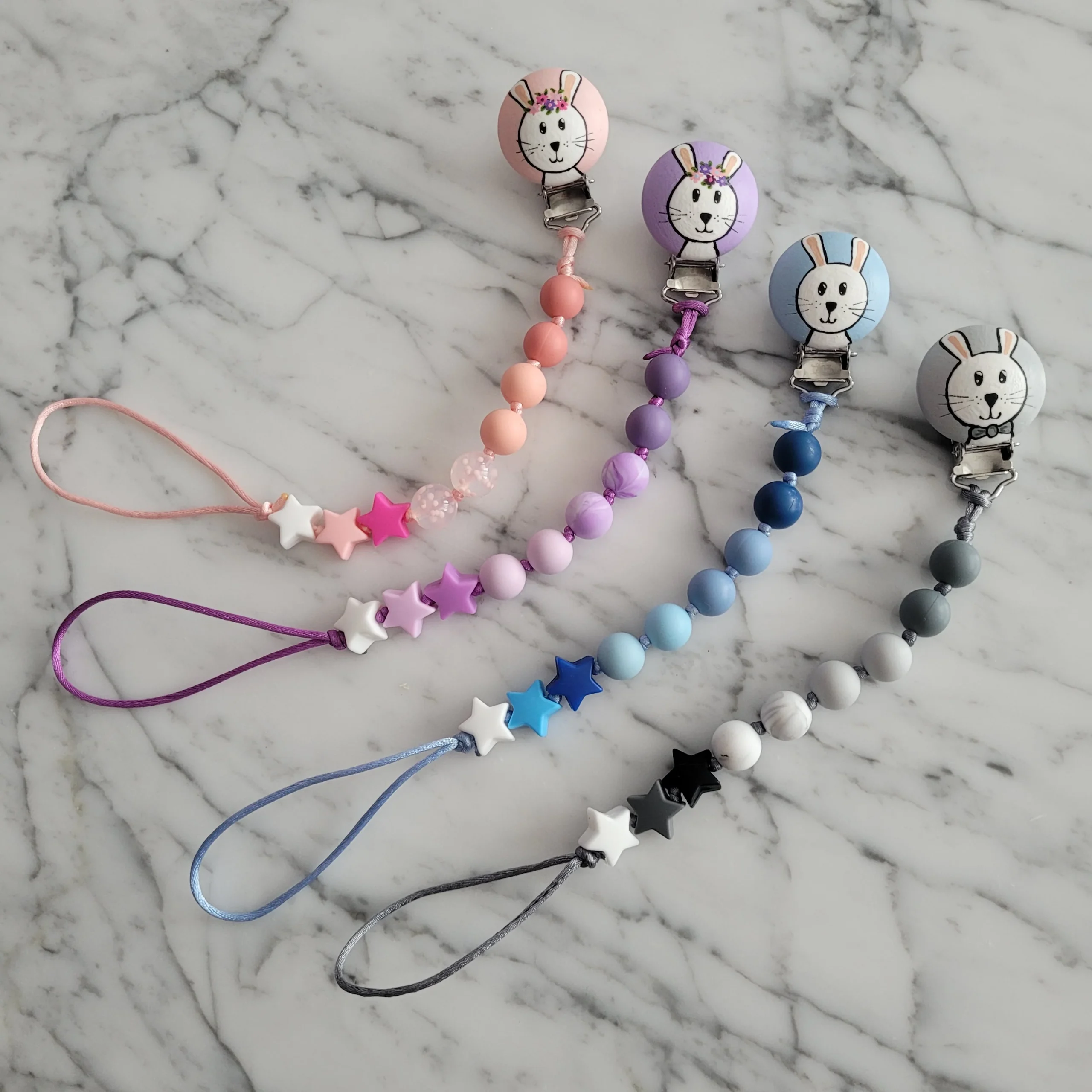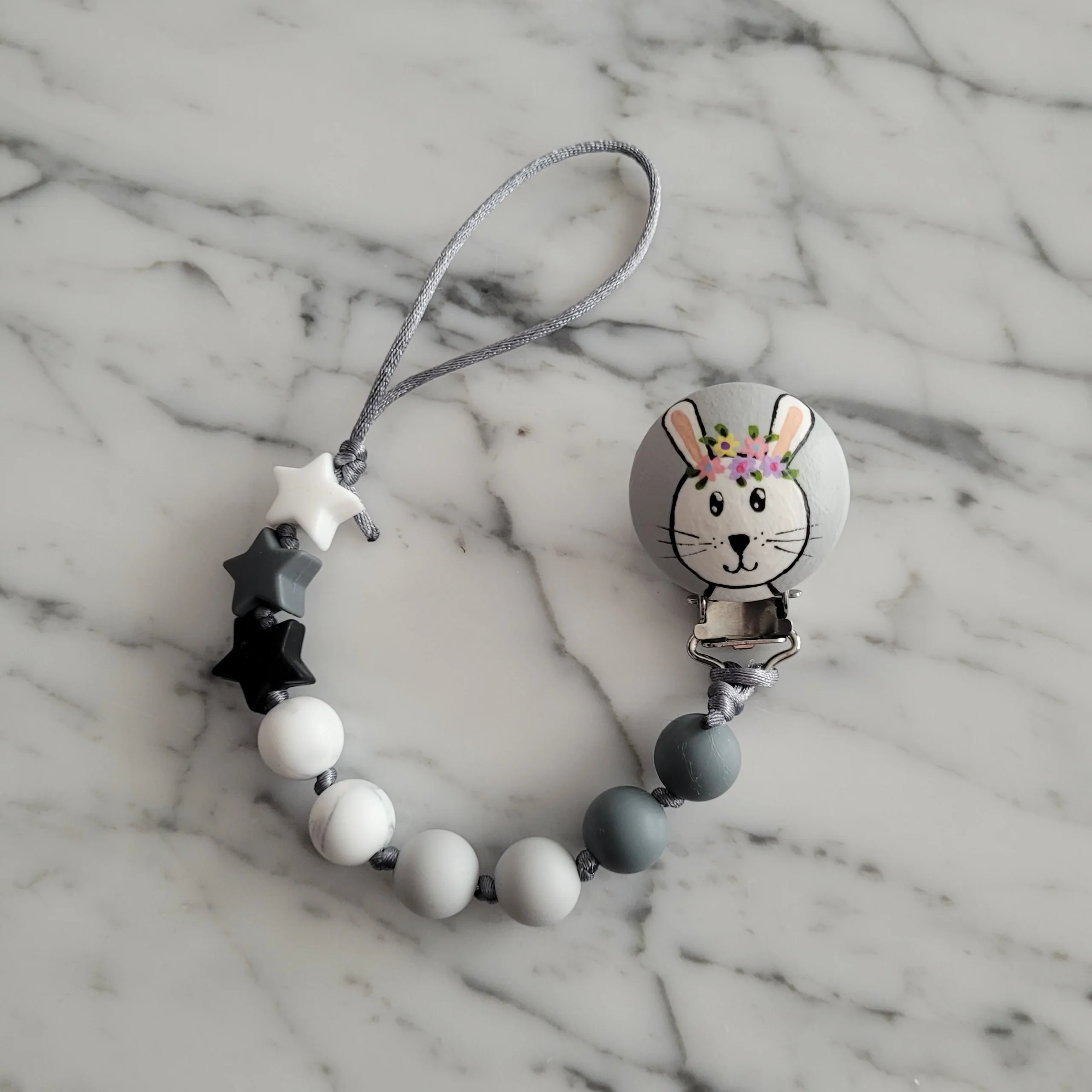 Comme Maman accessoires, vous propose des collections d’attache-suce peint a la main pour bébé. Ils sont élégants, confortables, légers et surtout, sécuritaires. Ils sont faits à la main, avec tout l’amour d’une maman.