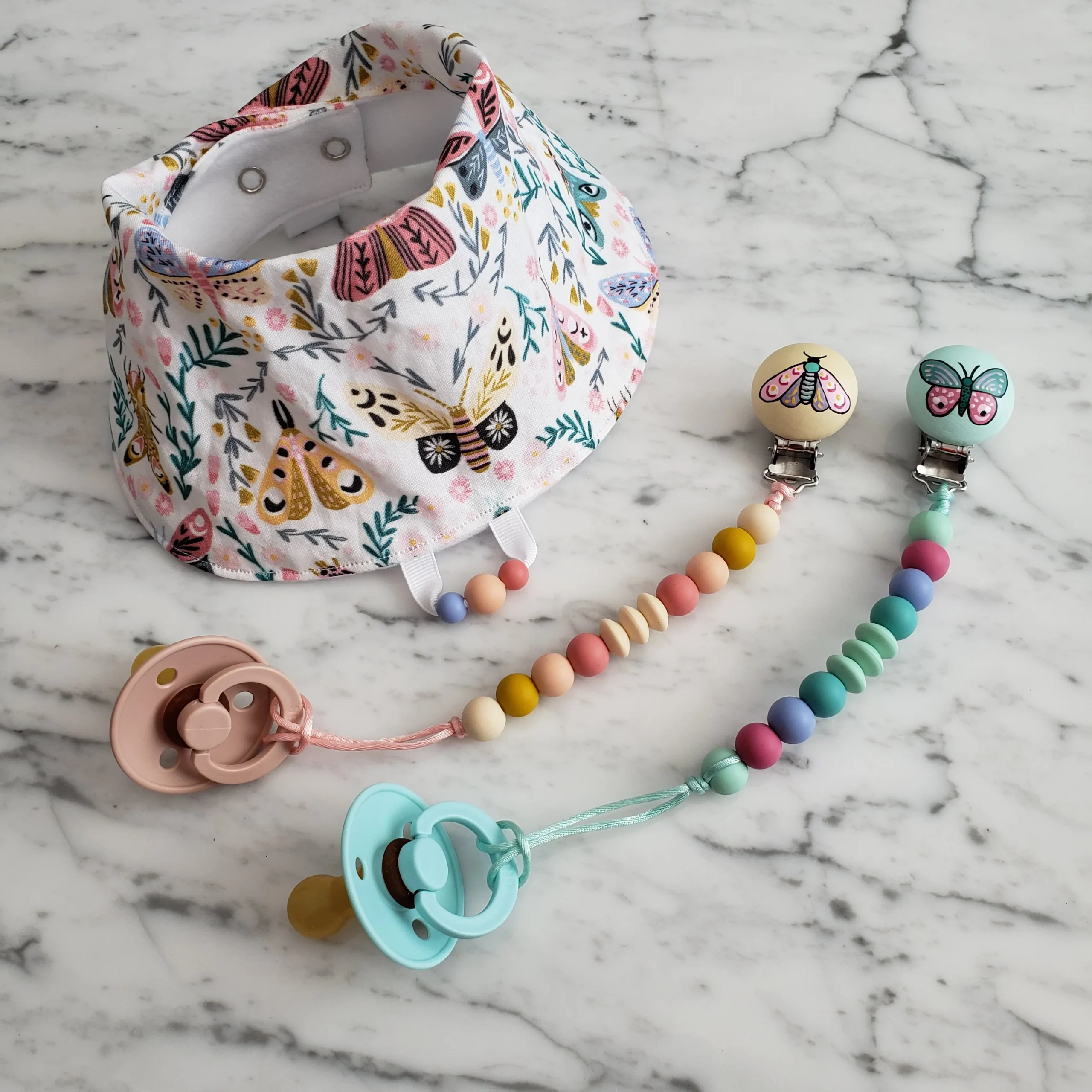 Comme Maman accessoires, vous propose des collections d’attache-suce peint a la main pour bébé. Ils sont élégants, confortables, légers et surtout, sécuritaires. Ils sont faits à la main, avec tout l’amour d’une maman.