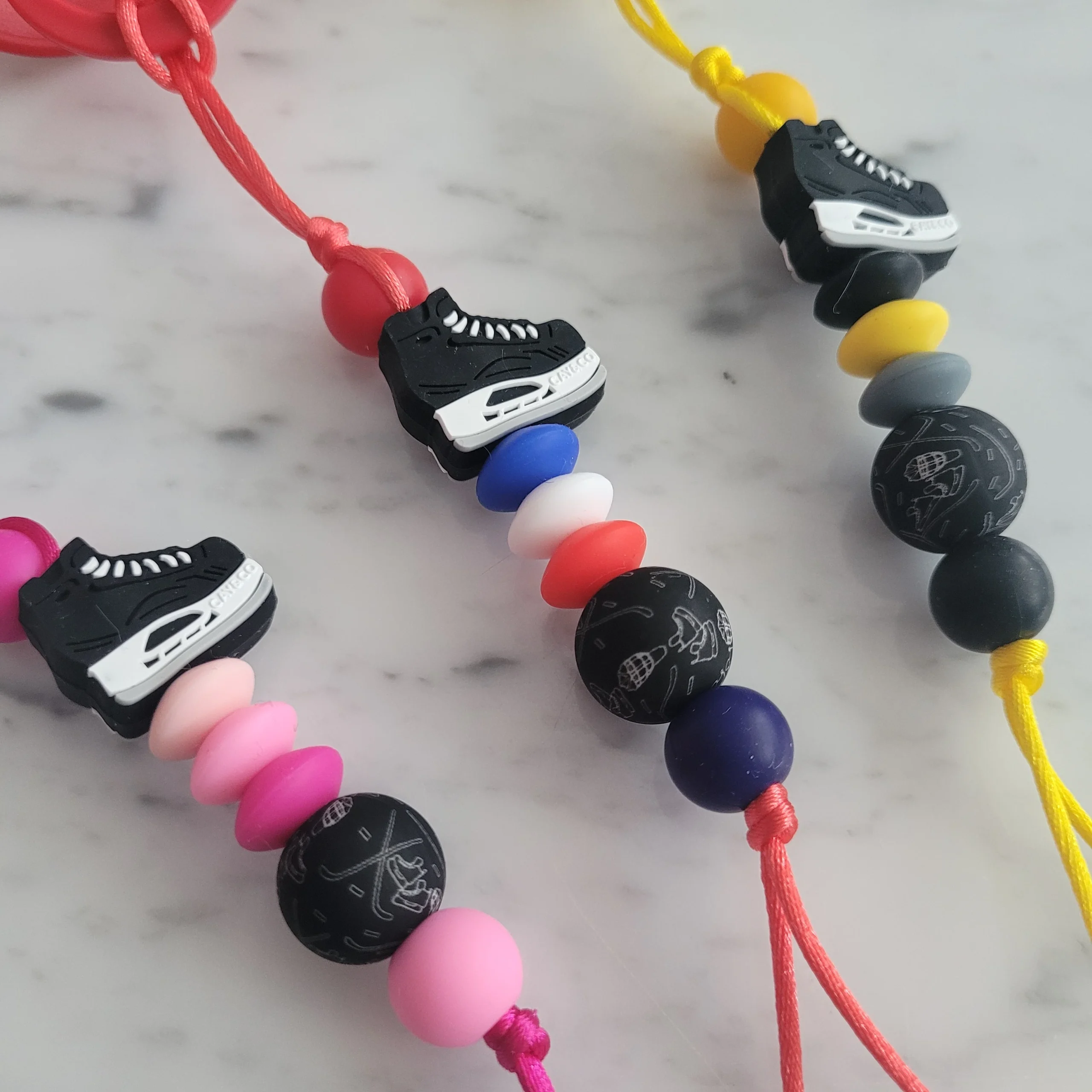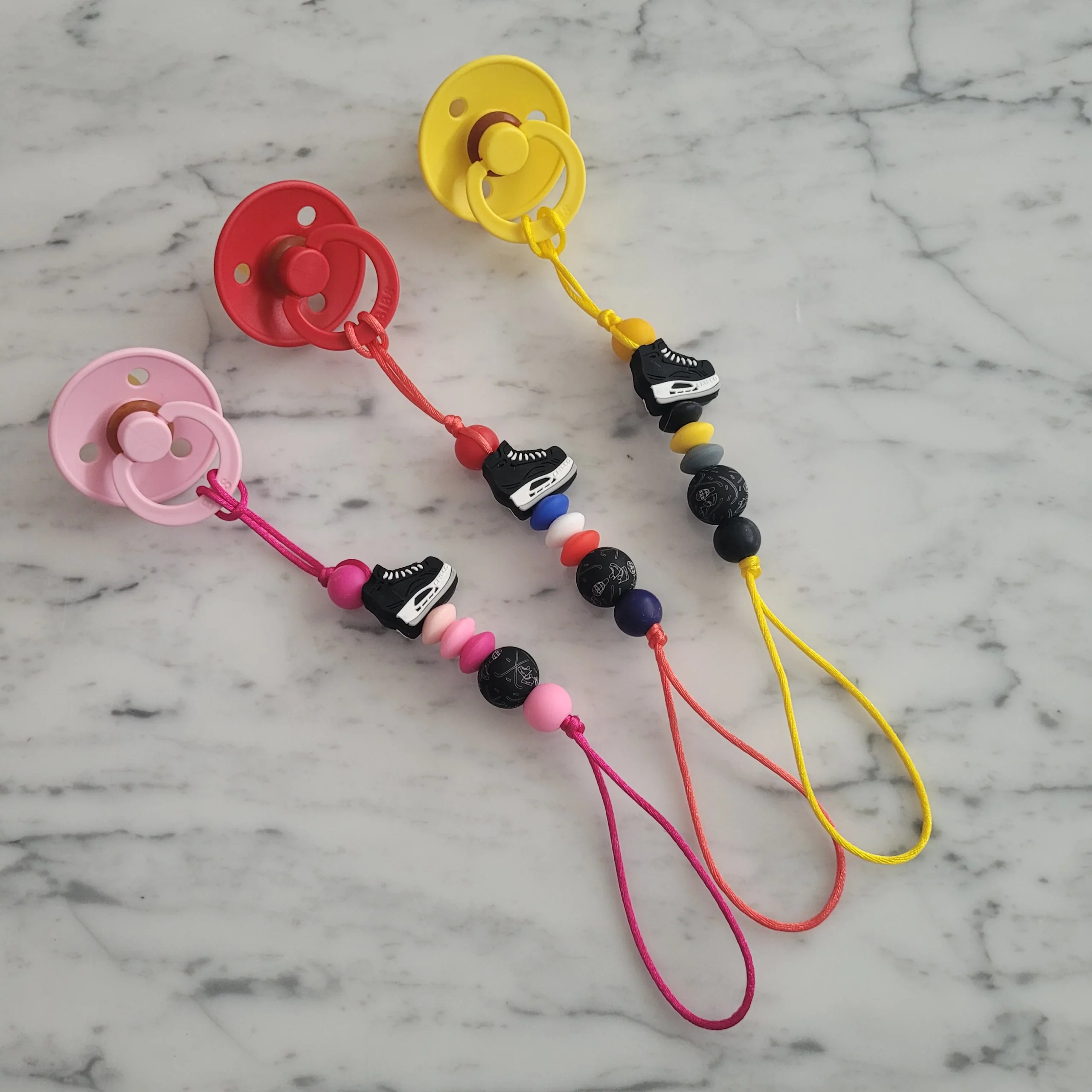 Les attache-suces, sont faits de billes de silicone de qualité, douces, moelleuses et résistantes, parfaites pour les gencives et les petites dents de votre bébé. Elles sont faites à 100% de silicone alimentaire sans BPA, sans PVC, sans Phtalates, sans plomb, sans mercure et sans cadmium.