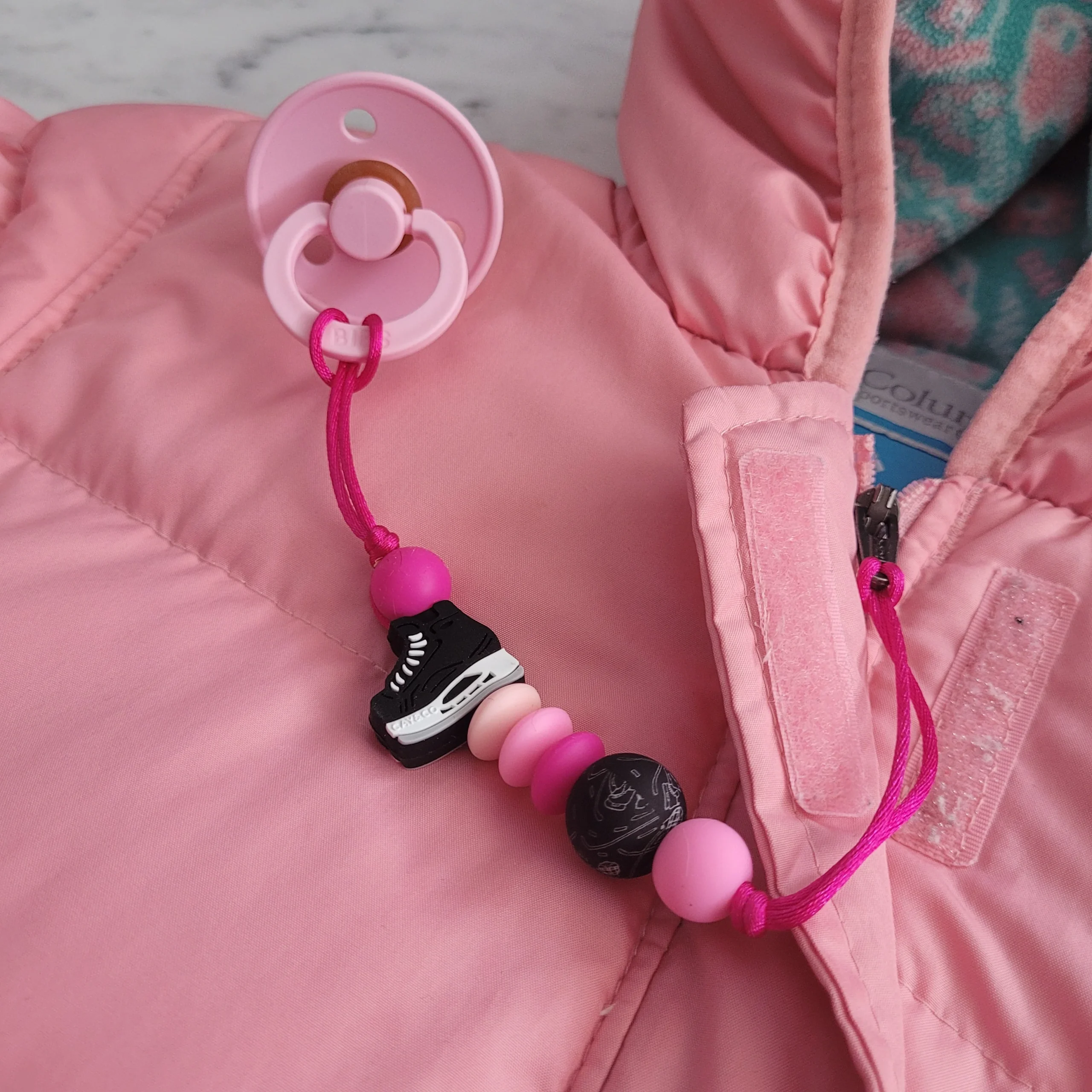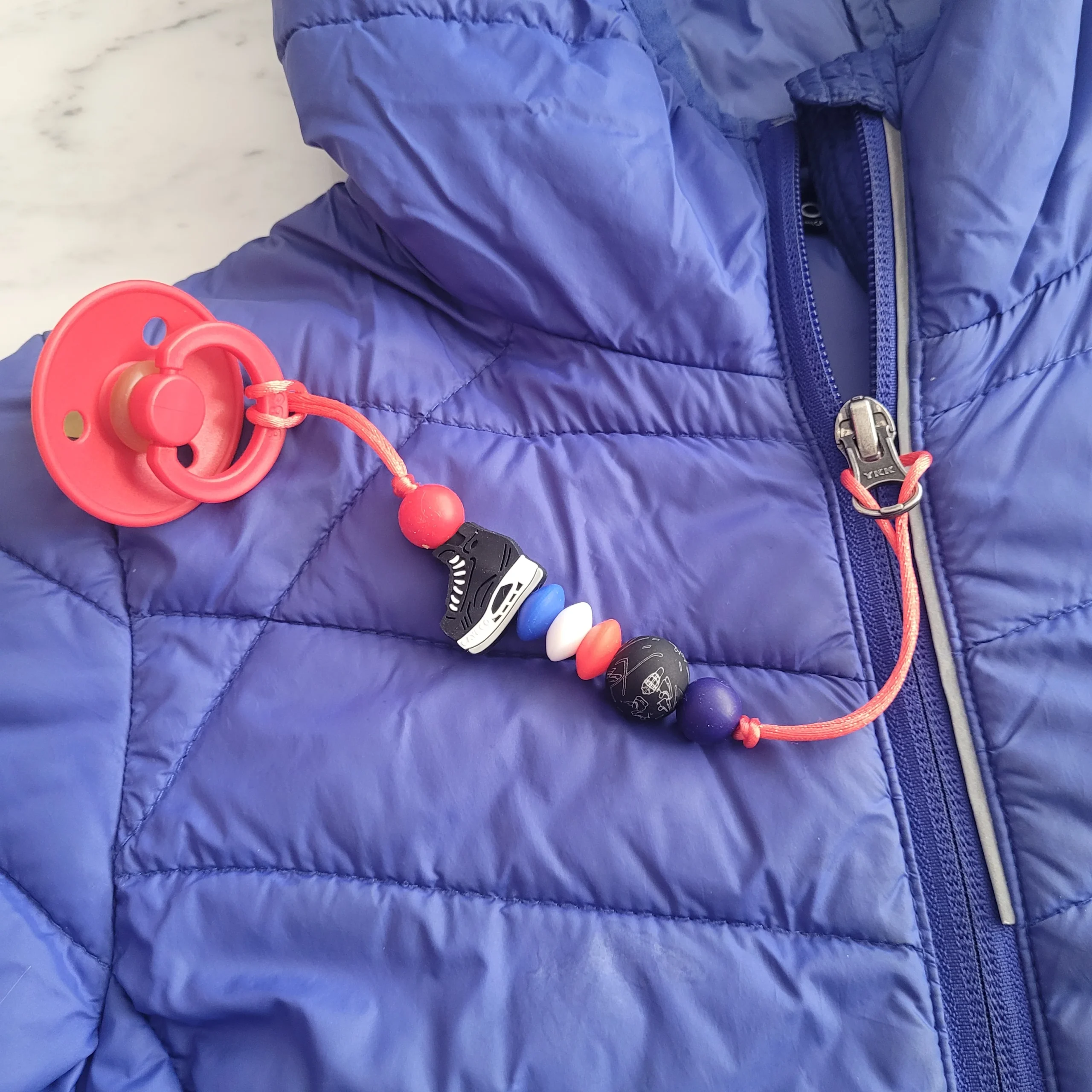 Comme Maman accessoires, vous propose des collections d’attache-suce a installer sur la fermeture éclair du manteau. Une façon sécuritaire, d’accrocher la suce en voiture et que bébé la garde a porté de bouche. (noter que, les compagnie de banc de voiture, interdisent d’accrocher des accessoires au ganse des bancs d’auto)