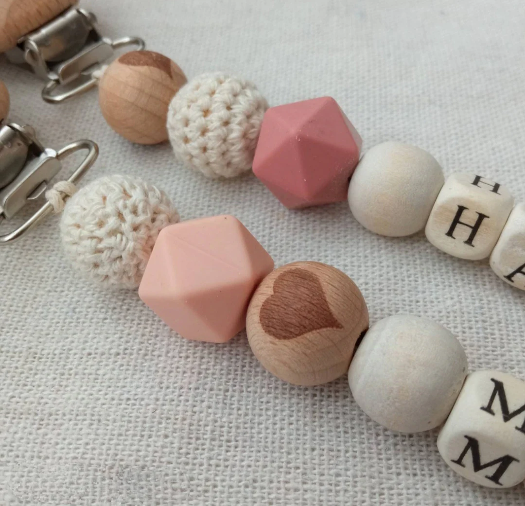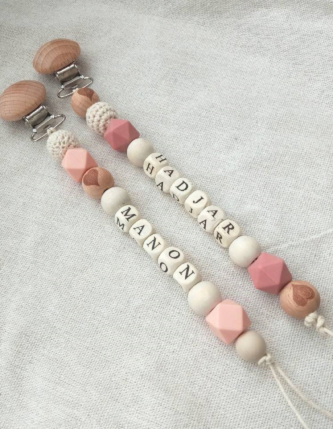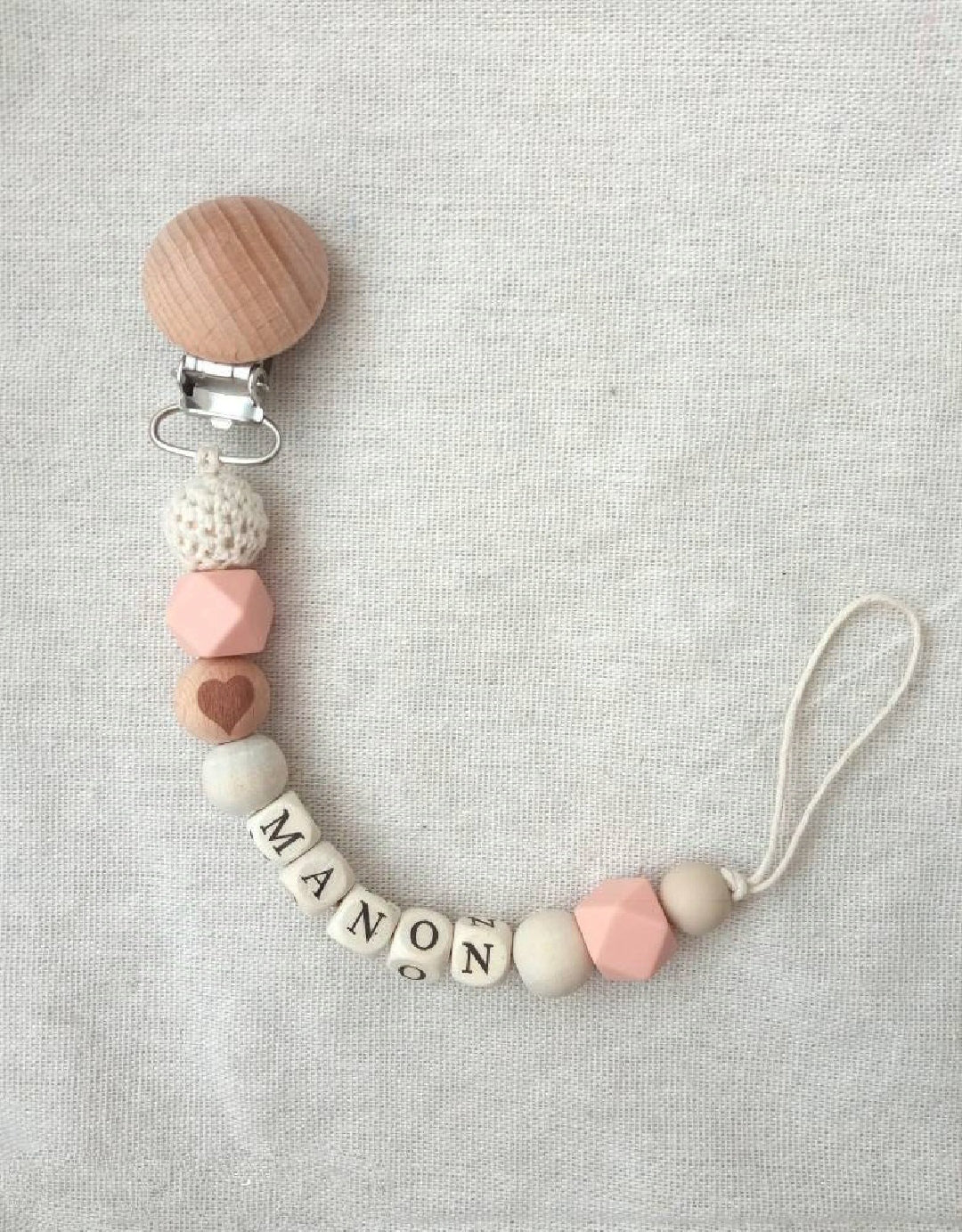Chères parents, allégez votre charge mental en ayant toujours à porté de mains la sucette de votre bébé ! Accessoires indispensable pour vous faciliter le quotidien. Attache tétine personnalisé en bois pour fille 🌸 Deux chois de modèles : * Le bois de rose composé de 2 perles en silicone couleur bois de rose, 1 […]