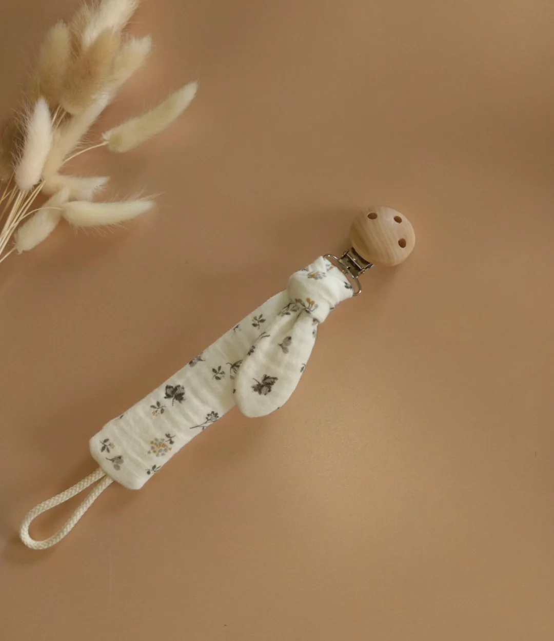 N’hésitez pas à me contacter pour choisir votre tissu où assorti l’attache tétine au doudou.