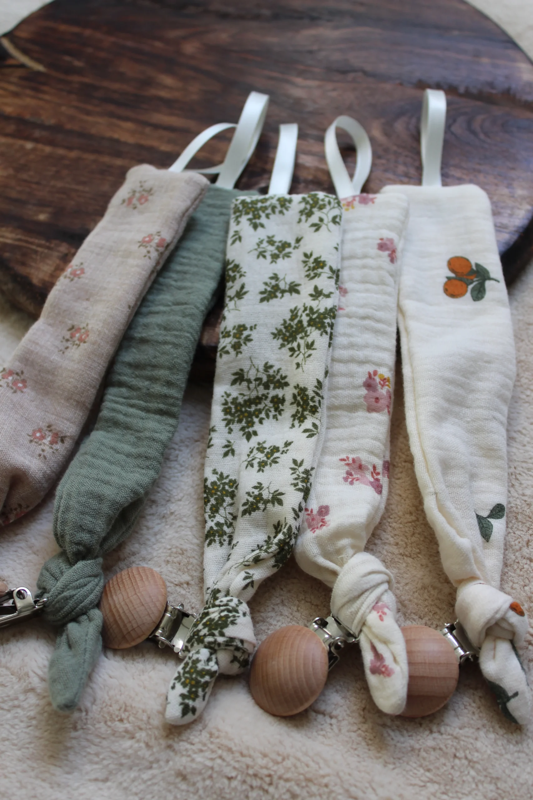 Les attaches tétines sont réalisées à partir de chutes de tissus, rien ne se perd !