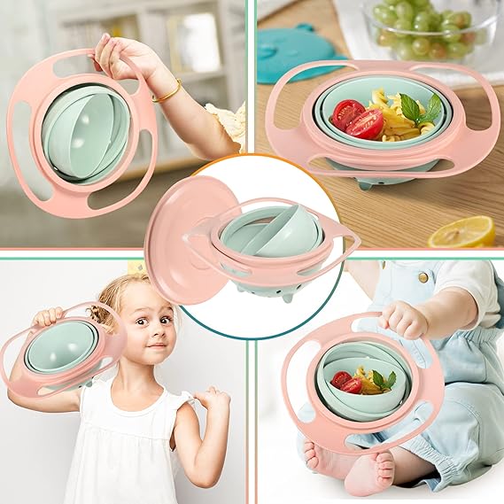 Le bol 360° est parfait pour les repas à la maison et en déplacement. Il peut contenir des céréales, des soupes, des fruits, des légumes, et bien plus encore, tout en assurant que les aliments restent dans le bol et ne se renversent pas.
