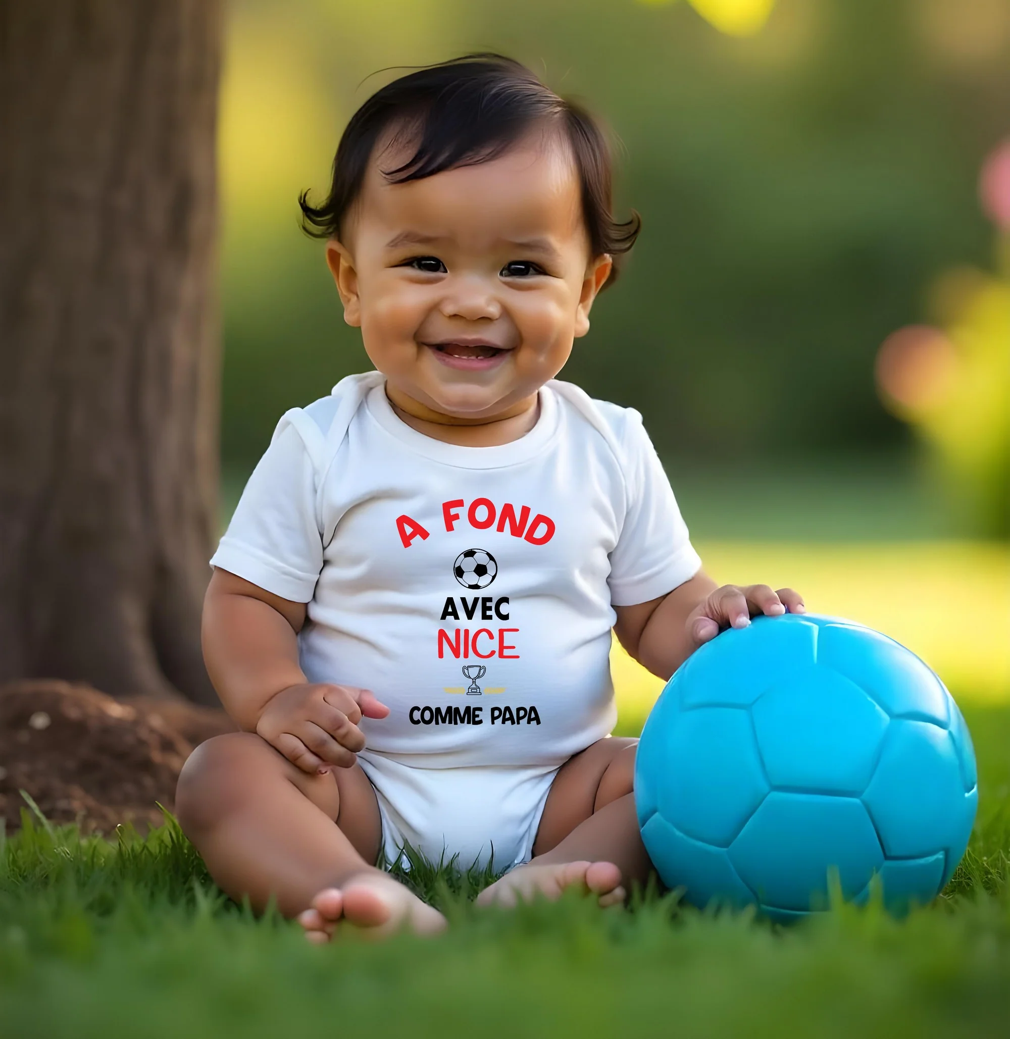 ⚽ Pour les petits supporters : un body « A fond avec NICE comme papa » .