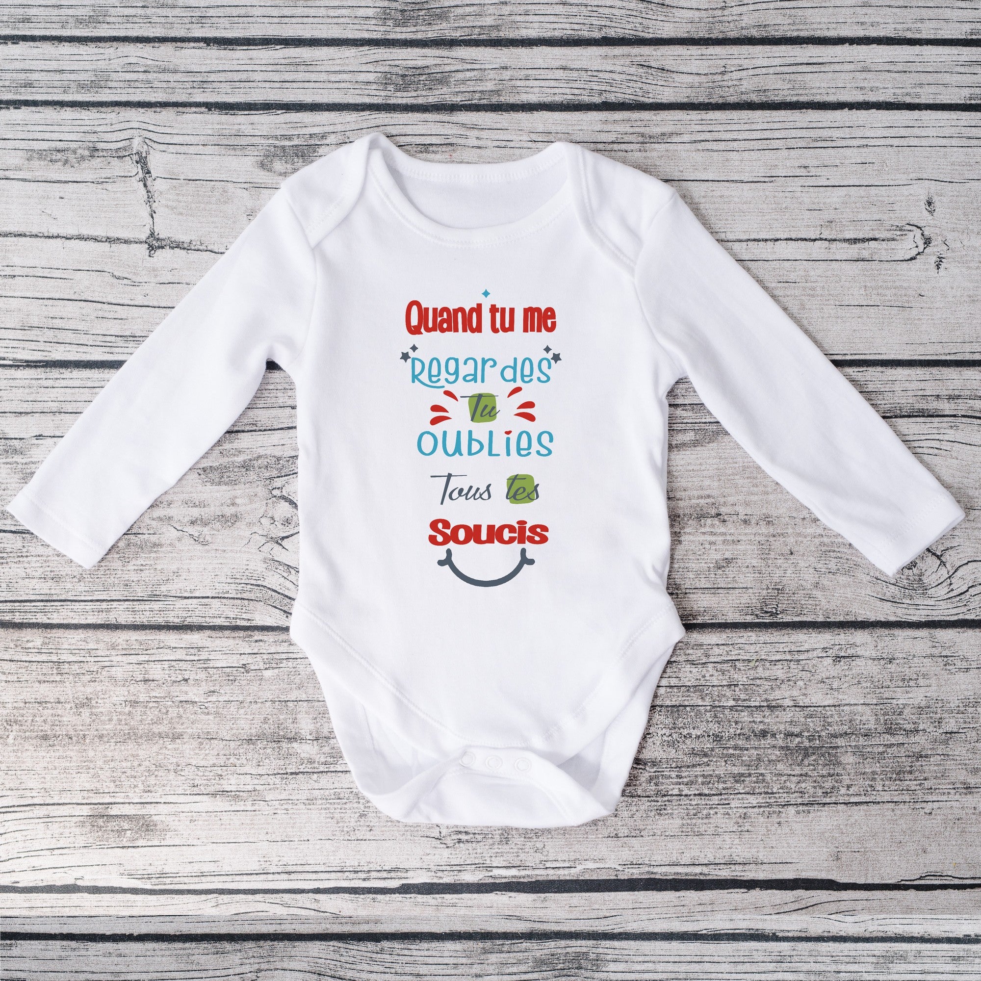 Body bébé personnalisé quand tu me regardes tu oublies tous tes soucis