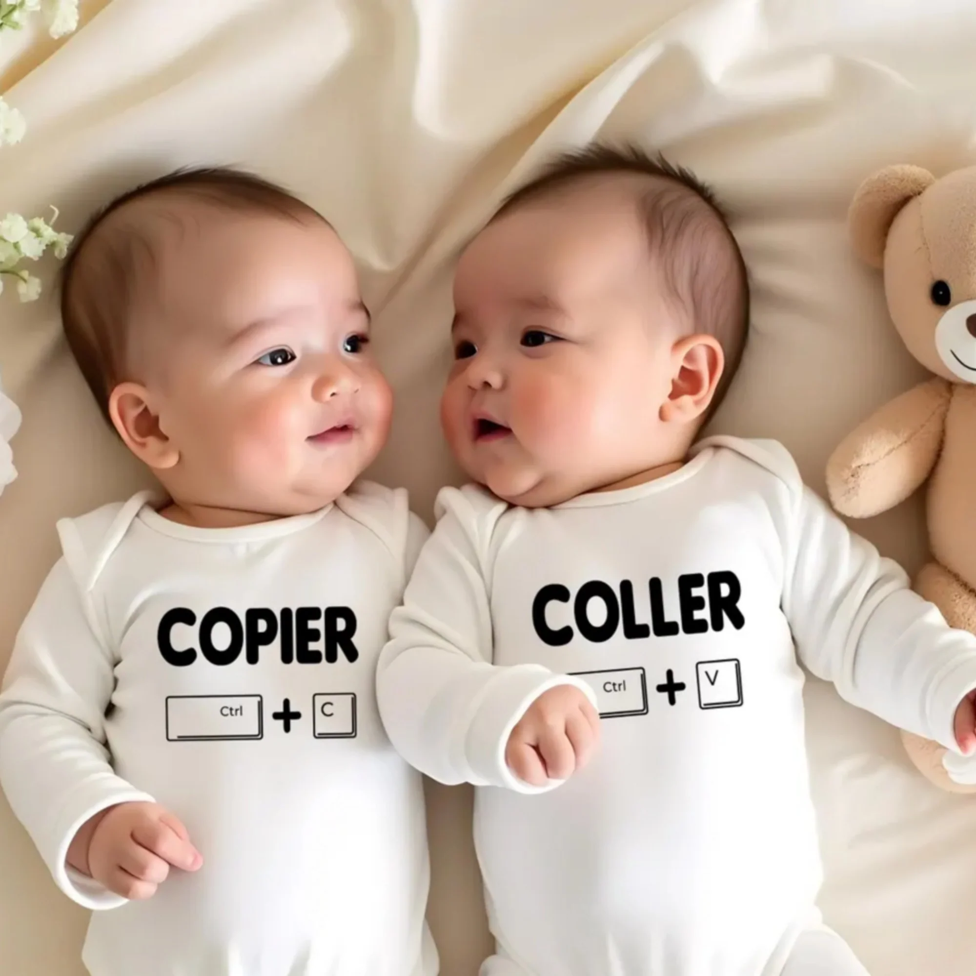 Découvrez notre duo de bodys trop mignons pour jumeaux 👶👶 Un ensemble fun et créatif qui fera sourire tout le monde ! 💫