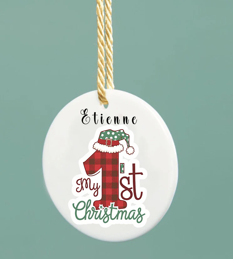 Célébrez un moment inoubliable avec cette boule de Noël plate « Mon 1er Noël », personnalisable avec le prénom de votre choix. Fabriquée en porcelaine, elle est parfaite pour ajouter une touche unique et élégante à votre sapin.