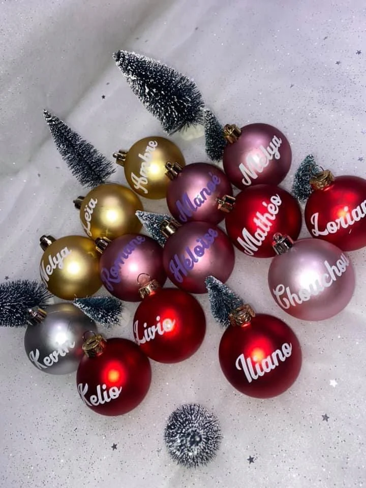 Boule de noël personnalisée avec le prenom/ texte de votre choix Idée originale pour personnaliser votre sapin de noël 🎄 Merci de préciser : la couleur de la boule le texte/prénom souhaité ainsi que sa couleur ⚠️ si vous souhaitez le modèle avec l’initiale et le prénom merci de le préciser.