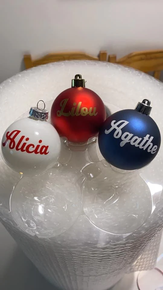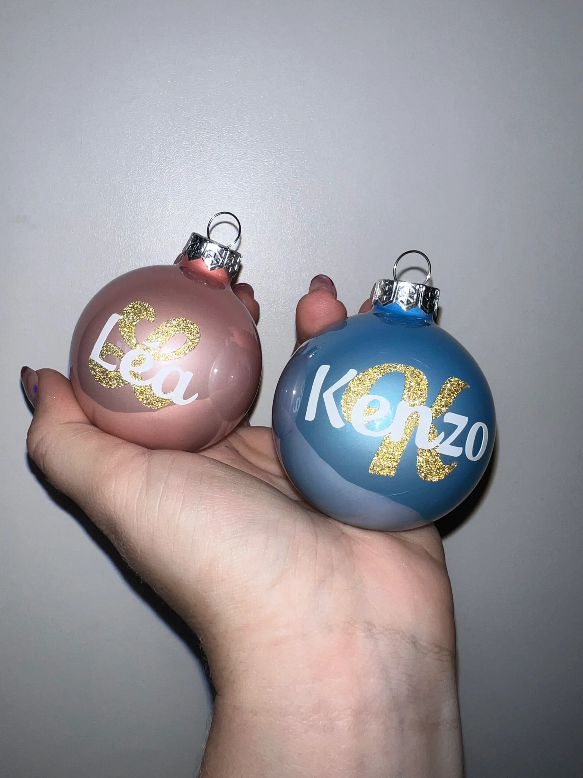 Boule de noël personnalisée avec le prenom/ texte de votre choix