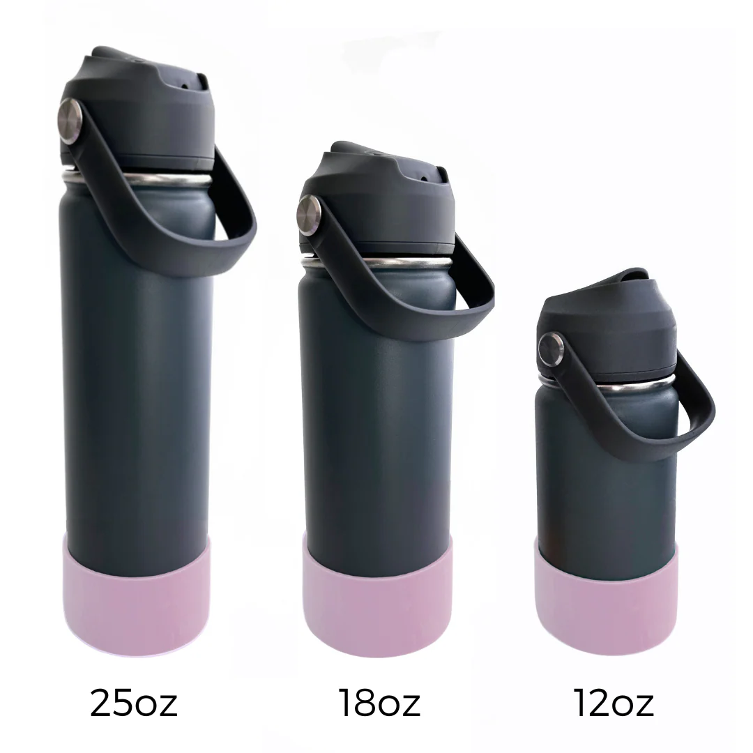 Elles sont recouvertes d’une botte en silicone offerte en 8 couleurs différentes pour protégée la bouteille des chutes potentielles et pour diminuer le bruit de la bouteille lorsqu’elle est déposé sur un bureau de classe.