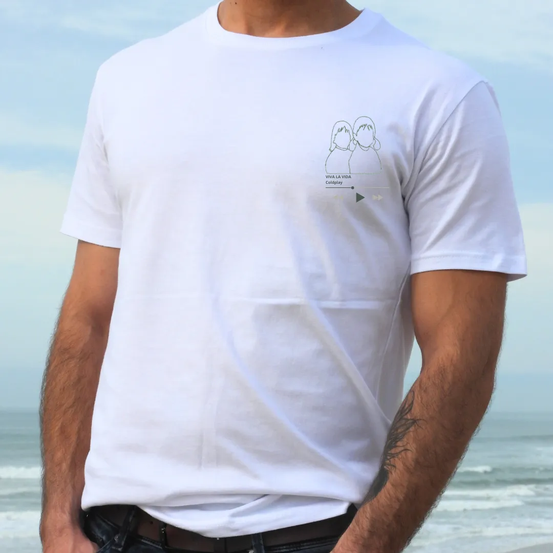 2. Ensuite, nous dessinons à la main les traits essentiels en line art, un style épuré qui capture l’essentiel de ce moment : la broderie prendra ensuite vie sur votre t-shirt ou pull. Nous nous occupons aussi d’inscrire le titre de votre musique préférée.