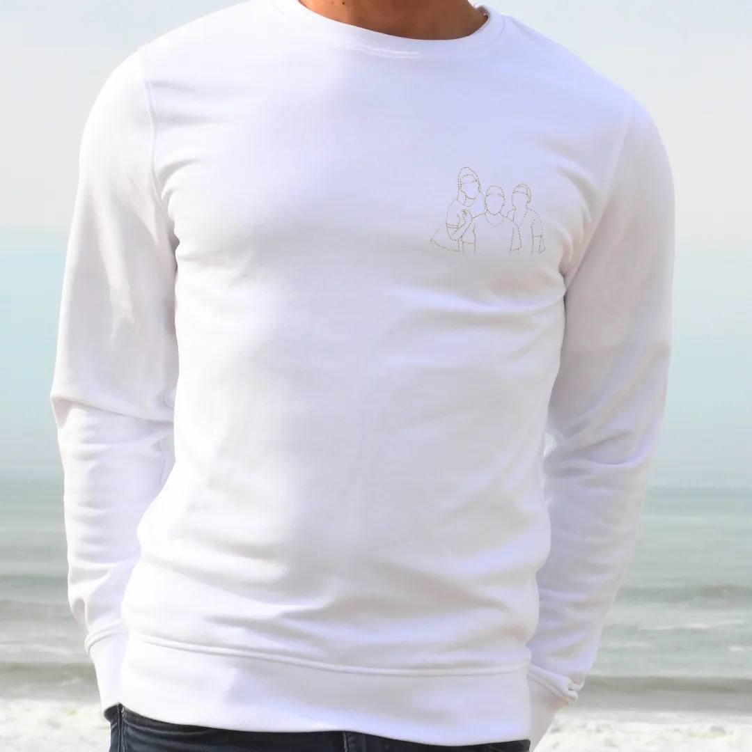 2. Ensuite, nous dessinons à la main les traits essentiels en line art, un style épuré qui capture l’essentiel de ce moment : la broderie prendra ensuite vie sur votre t-shirt ou pull.