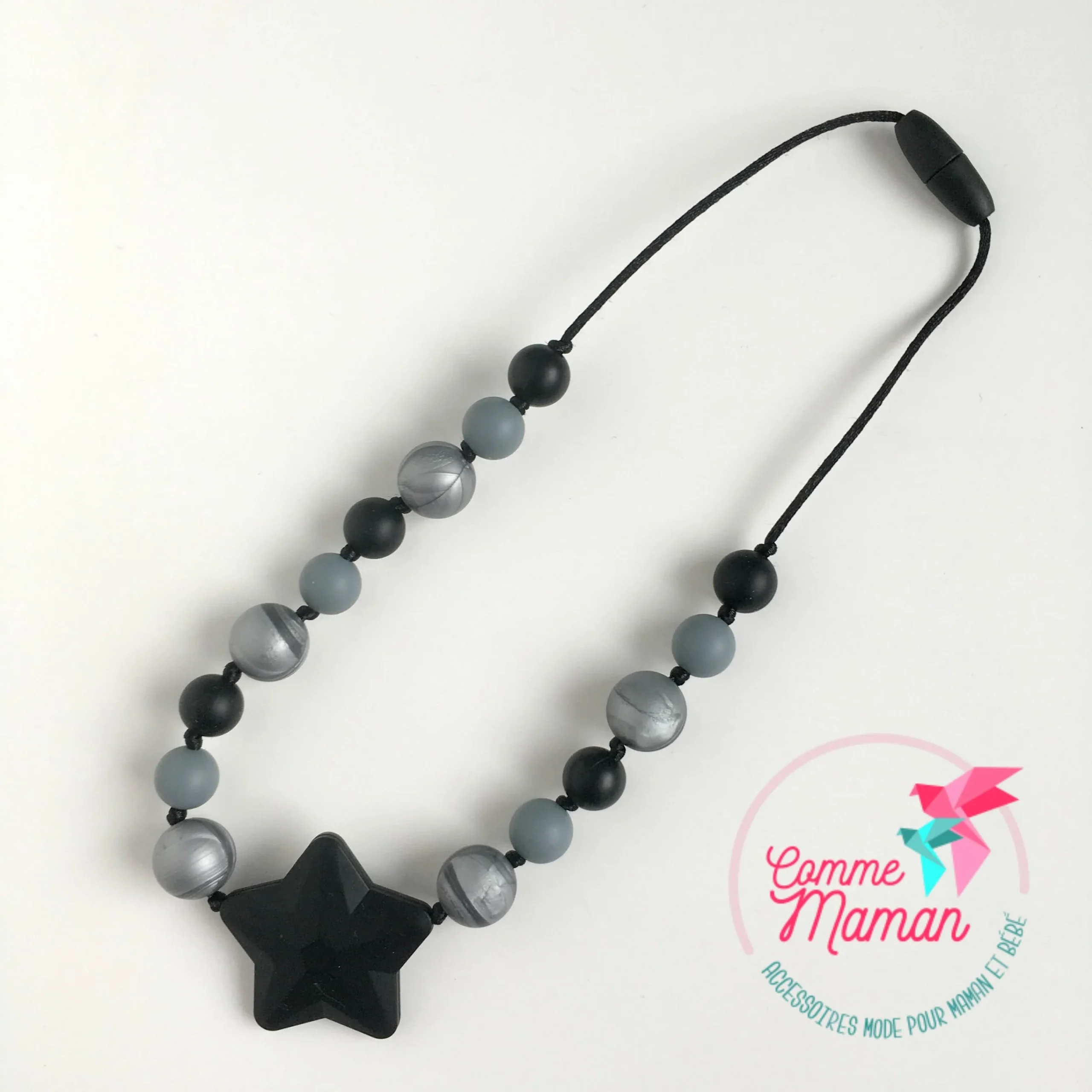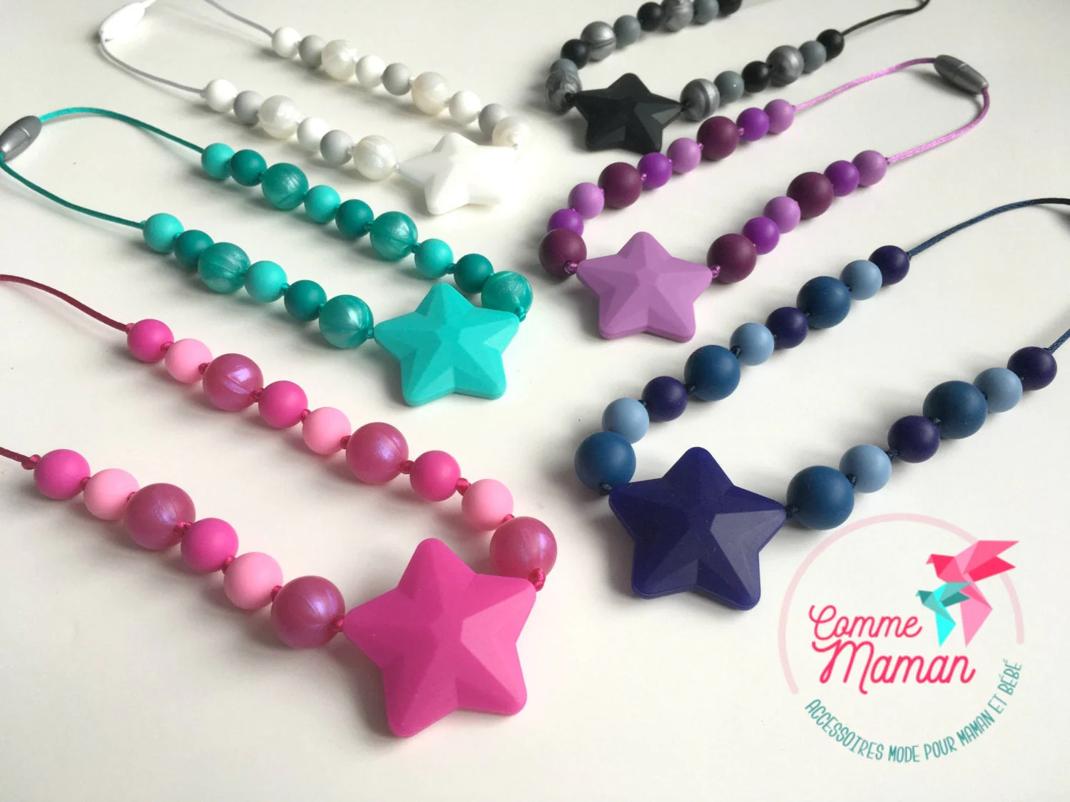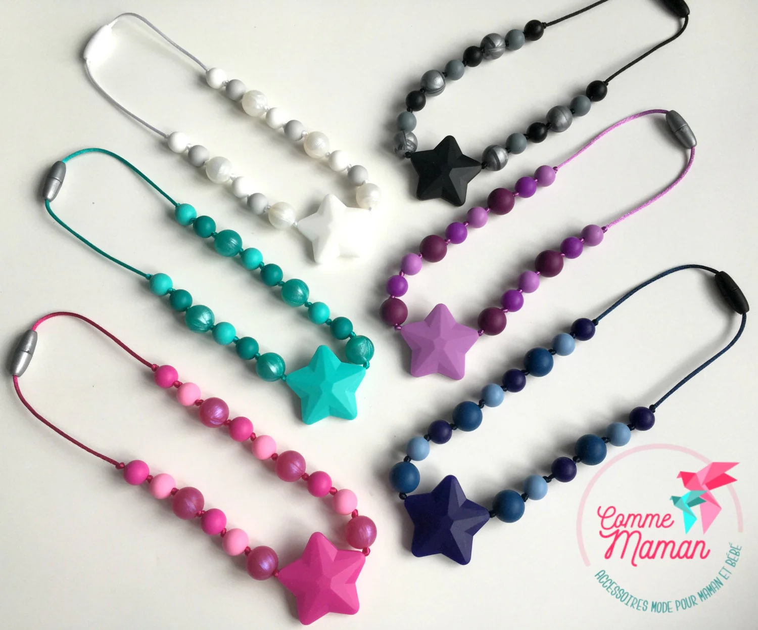 Collier pour enfant ÉTOILE, attache clip sécuritaire, perles de silicone, Cadeau d’anniversaire