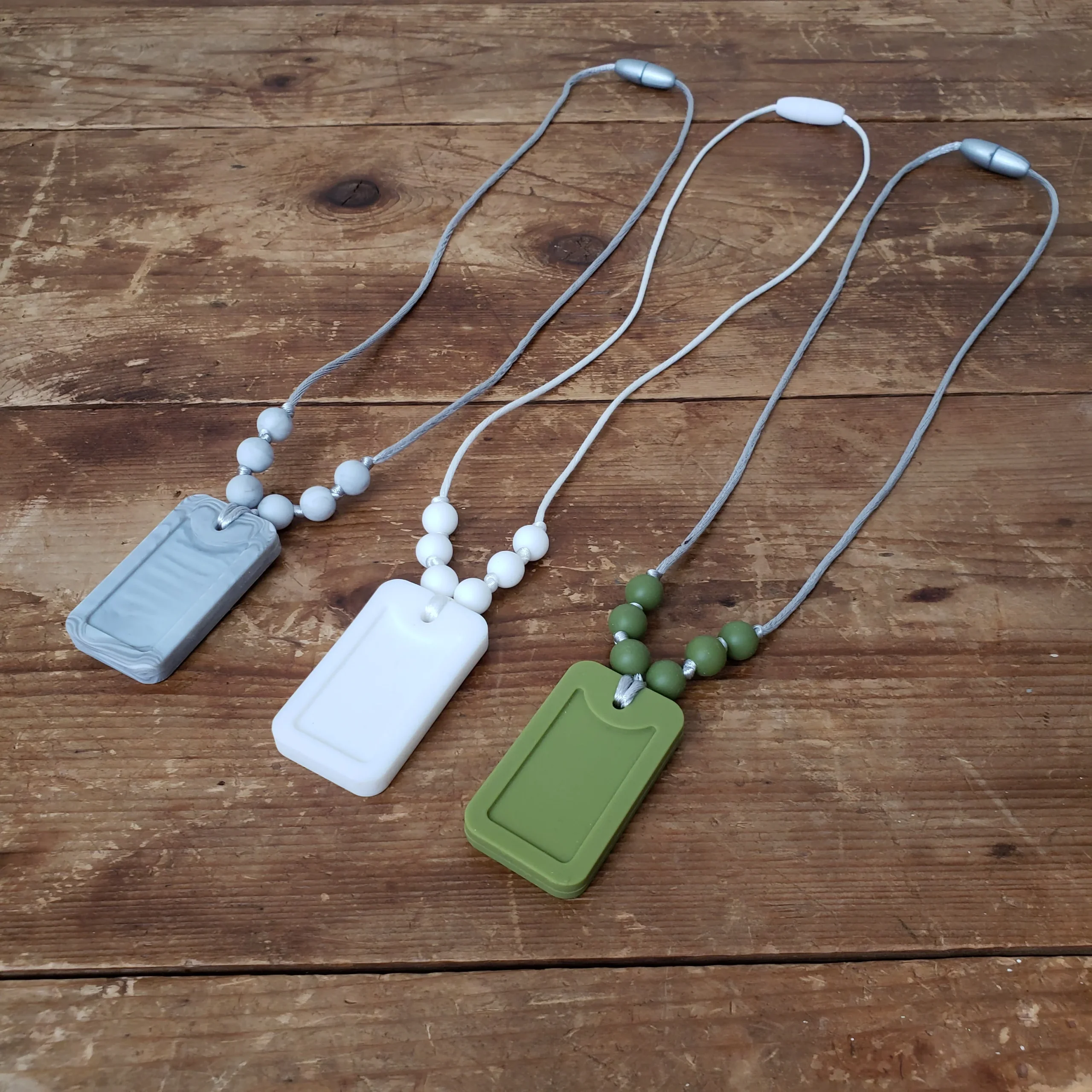 Les colliers sont faits de billes de silicone de qualité, douces, moelleuses et résistantes, parfaites pour les gencives et les petites dents de votre bébé. Elles sont faites de 100% de silicone alimentaire sans BPA, sans PVC, sans Phtalates, sans plomb, sans mercure et sans cadmium.