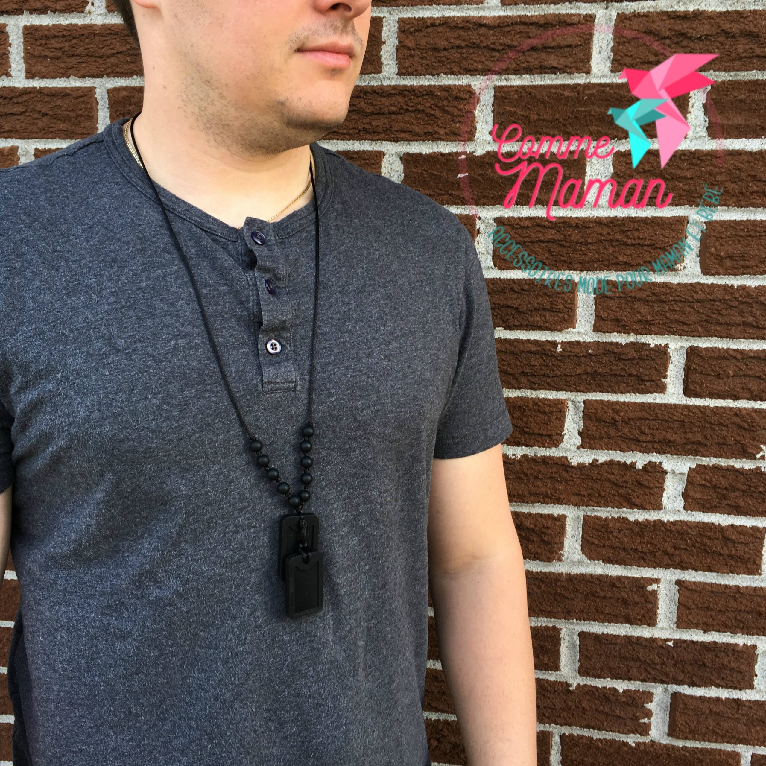 Collier pour enfant JAMES, 1 plaque d’armée, collier de dentition, portage, collier pour papa