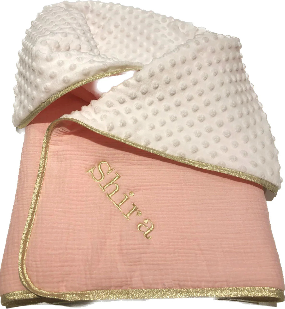Couverture bébé personnalisée double gaze Blush biais doré