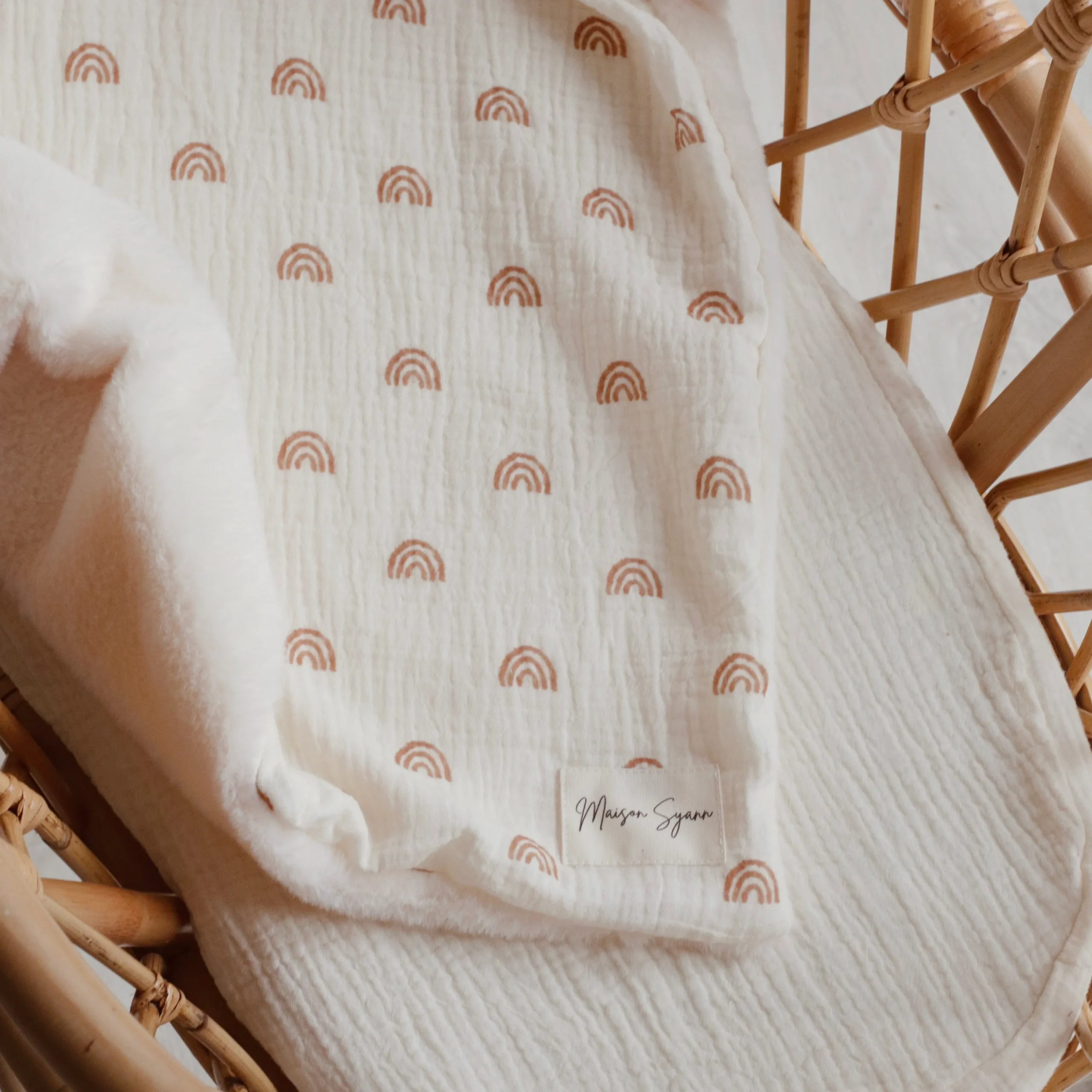 Couverture bébé personnalisée double gaze Blush biais doré