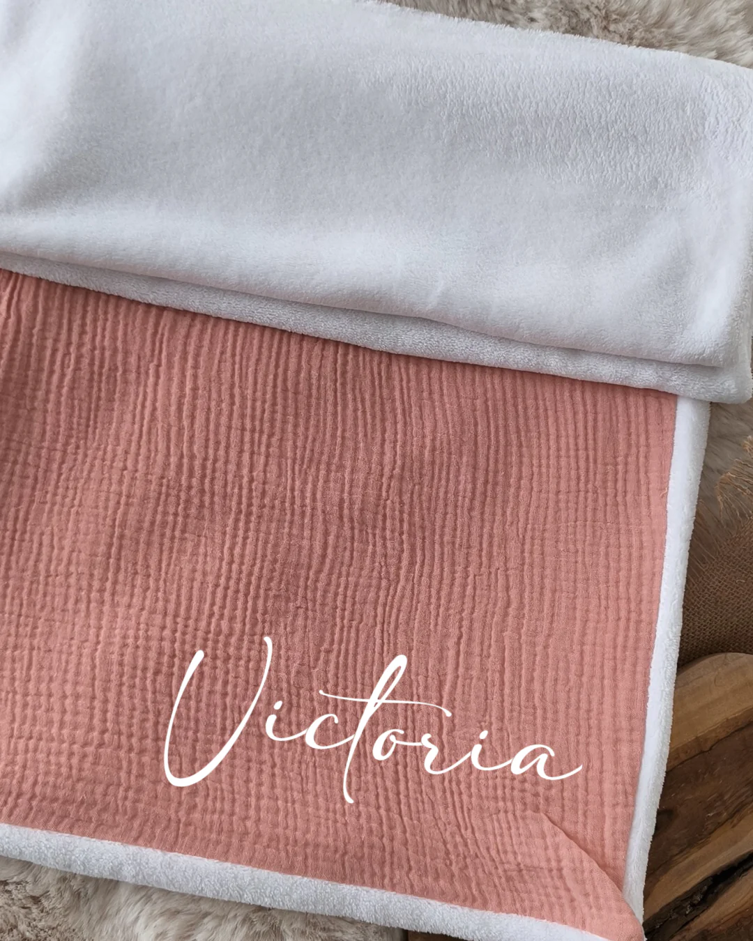 Soyez le premier à laisser votre avis sur “Couverture polaire gaze de coton – Rose – Prénom”