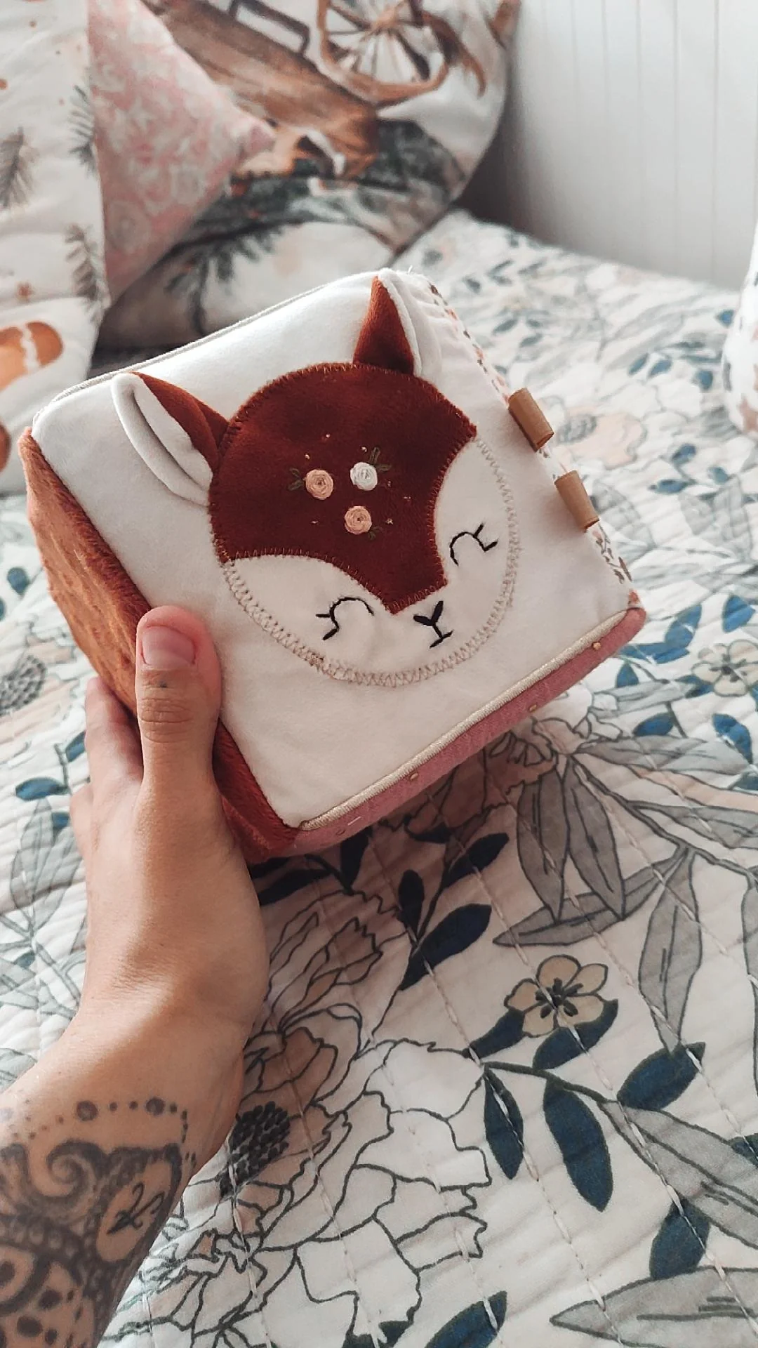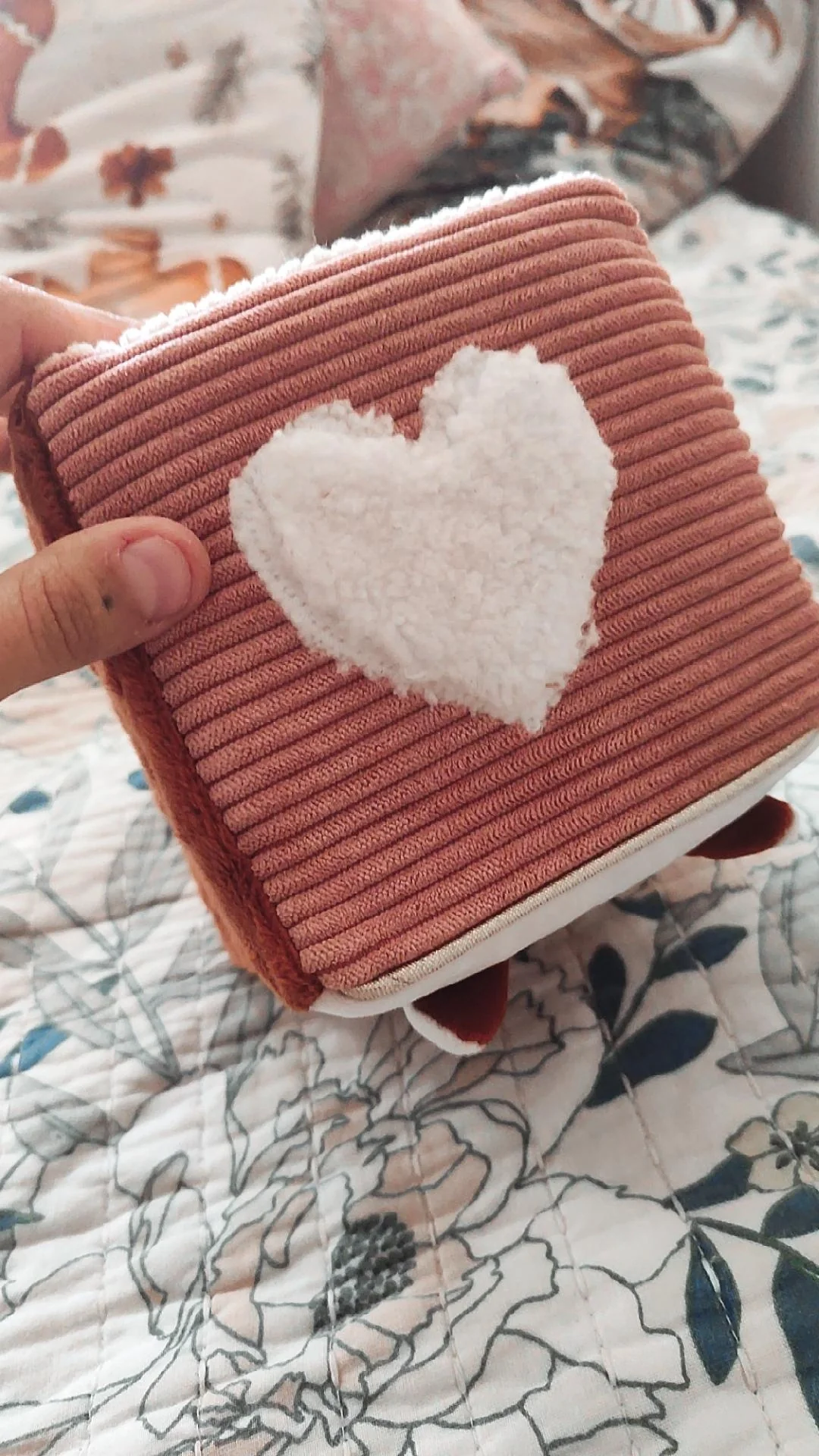 Un joli cube d’éveil sensoriel au teinte rosé et à l’effigie de notre jolie Rosie ❤️ grand modèle 12.5*12.5 cm