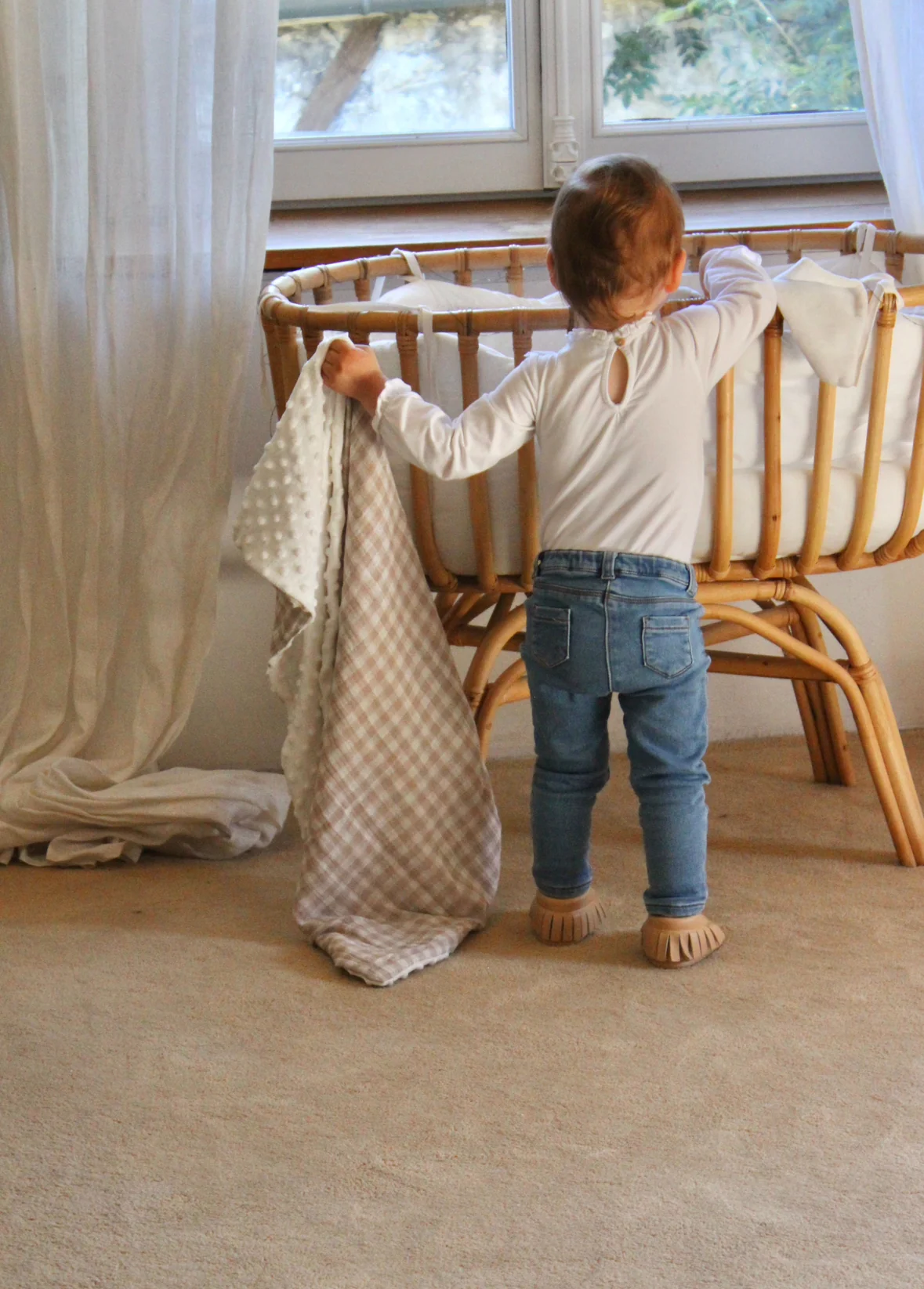 Cadeau de naissance idéal, notre jolie couverture légère à emmener partout. Elle suivra bébé de sa naissance jusqu’à sa transition entre la turbulette et la couette.