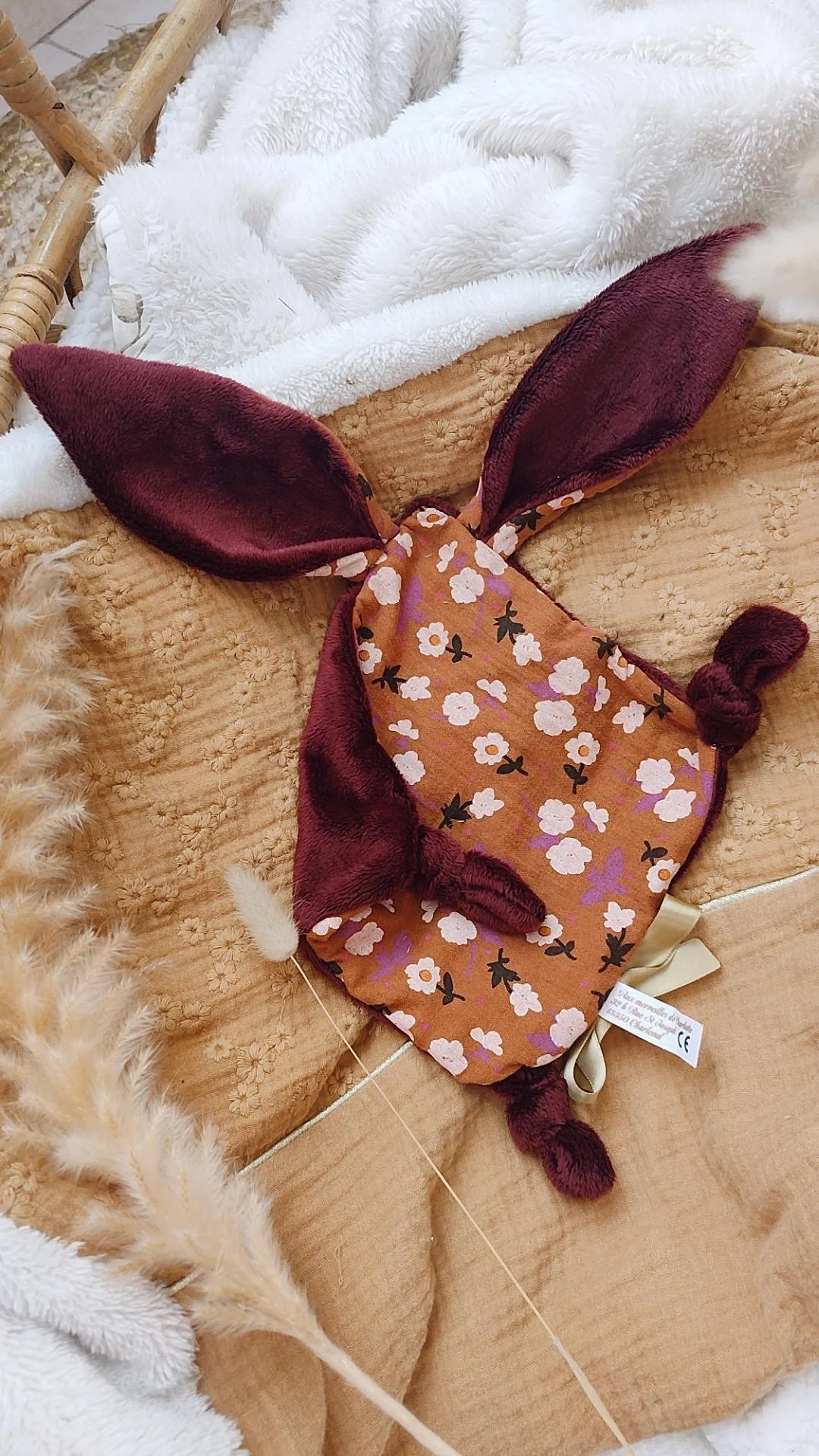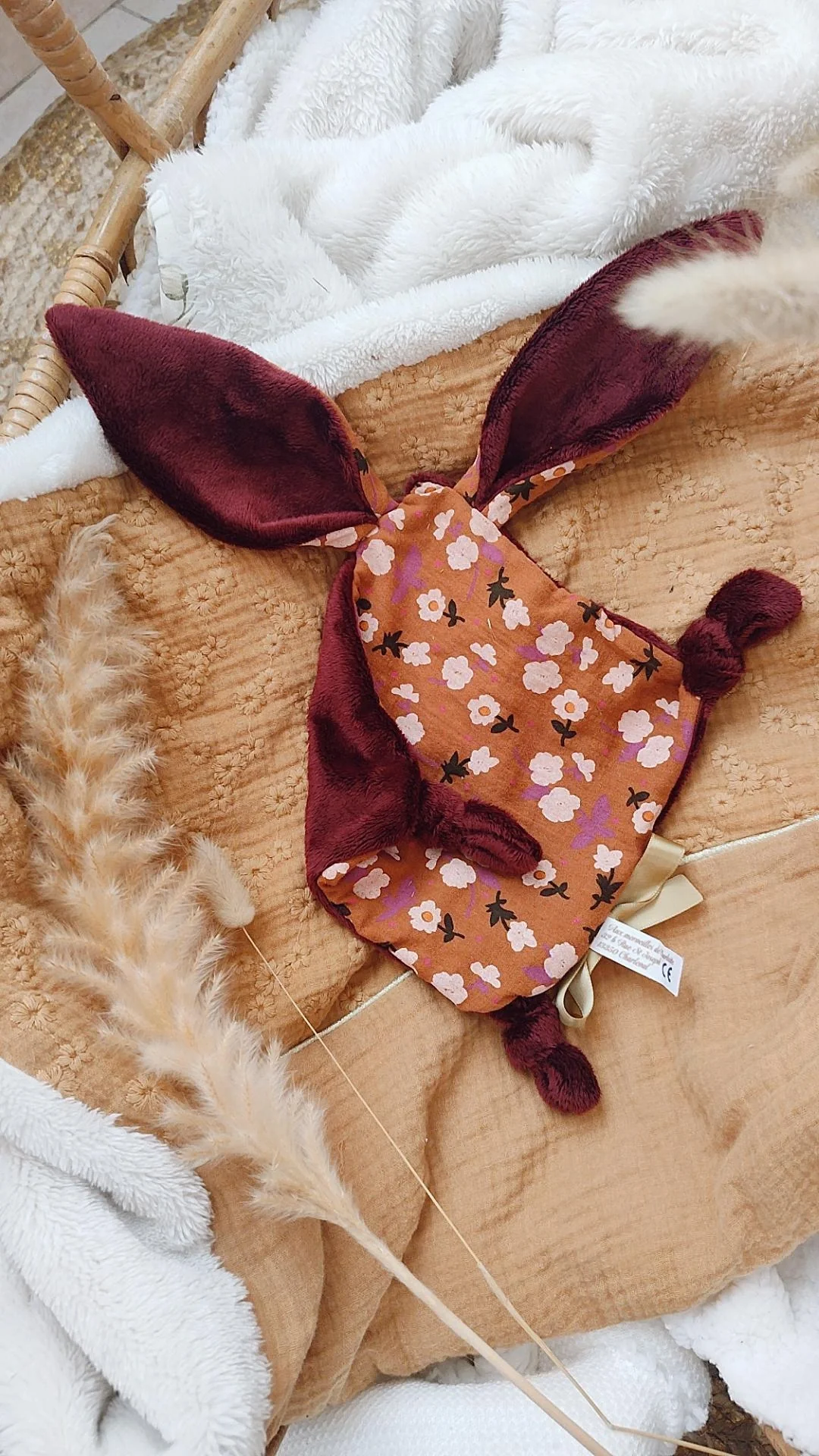 Ses grandes oreilles bi-matières (gaze de coton + minky premium) et son corps 20×20 cm tout doux stimulent les sens de bébé et l’apaisent au quotidien.