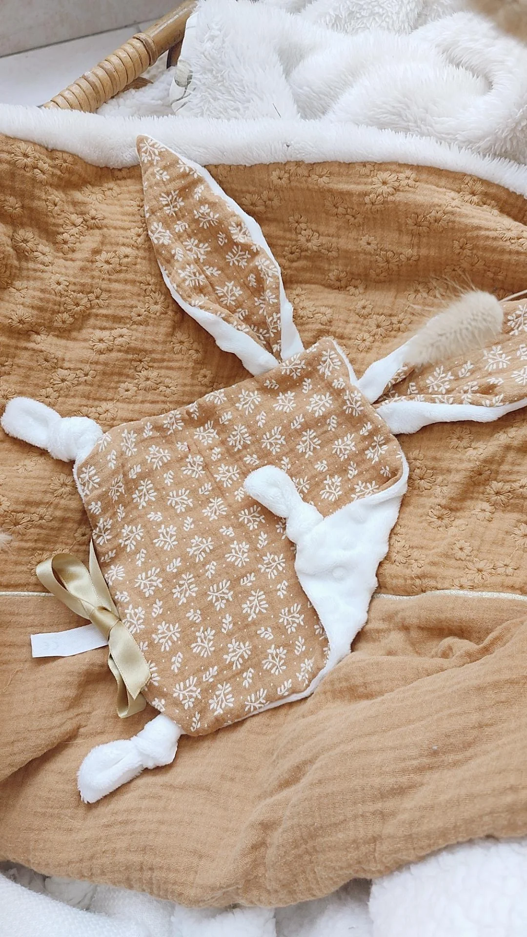Avec ses 3 nœuds en minky parfaits à manipuler ou mâchouiller et ses 2 rubans attache-tétine, c’est le doudou pratique, simple et rassurant que les mamans adorent.
