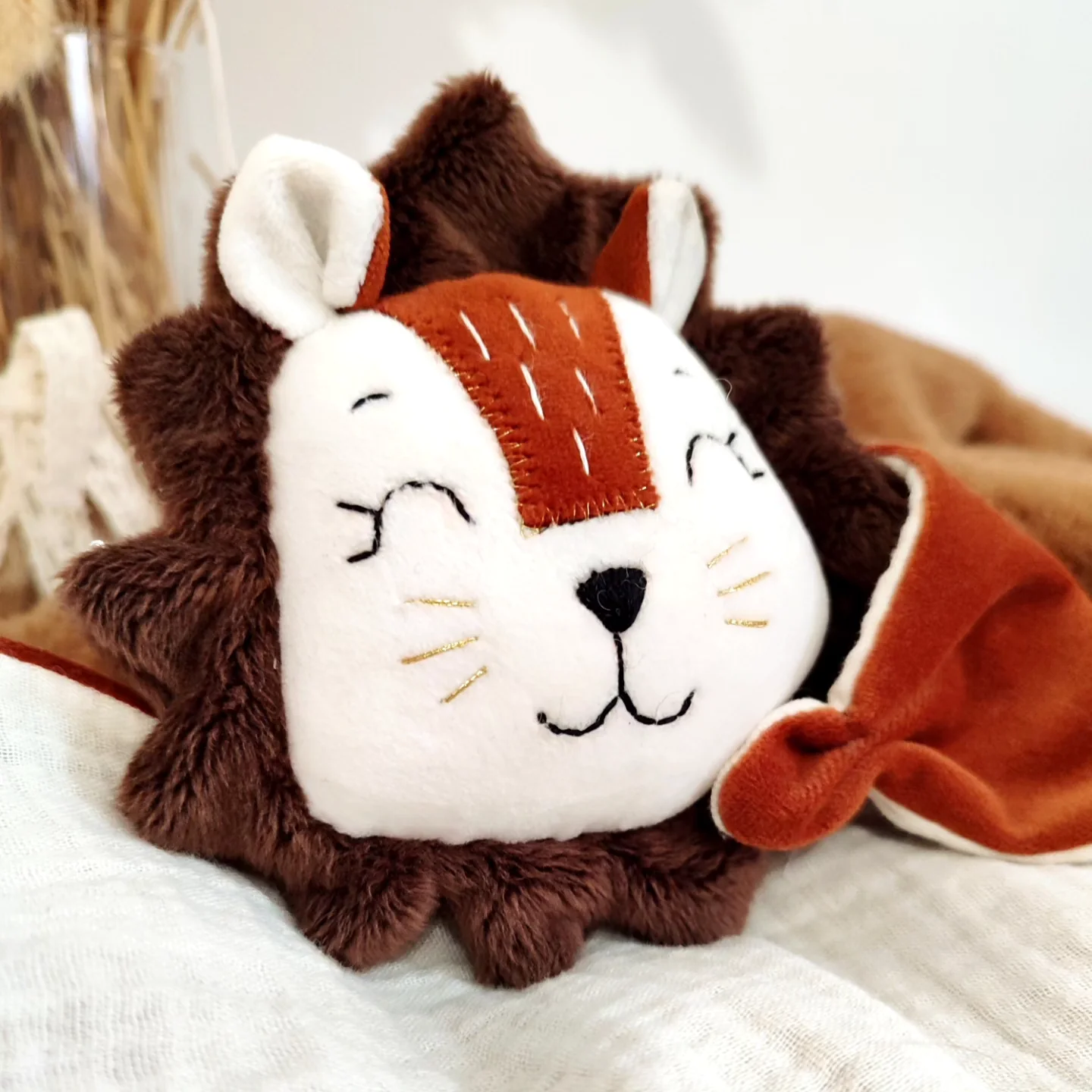 Offrez à votre enfant un doudou unique et plein de caractère avec ce doudou lion personnalisé, entièrement fait main dans mon atelier en France.
