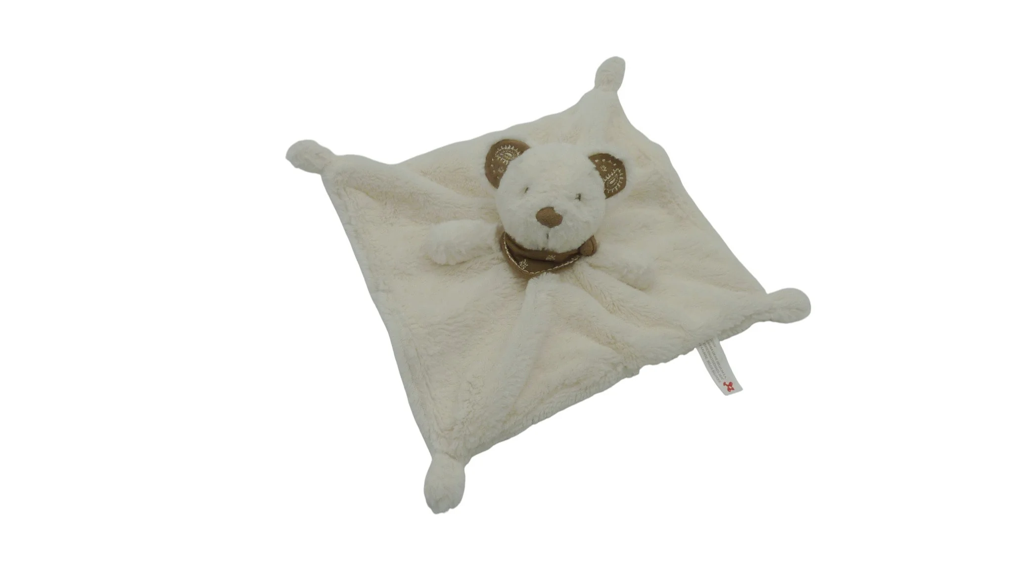 Doudou ours plat Nicotoy – 24×24 cm, crème et marron