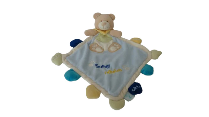 Issu de la collection Les Supers Doudous de la marque Baby’Nat, ce doudou en forme d’ours plat est conçu pour stimuler les sens des tout-petits. Mesurant environ 38 cm, il combine un grelot discret et une matière bruissante, offrant une expérience sensorielle agréable et rassurante. Ses jolies teintes bleu, vert et jaune éveillent la curiosité visuelle tout en apportant une touche joyeuse. Ce modèle est en excellent état (vendu sans coffret), prêt à accompagner bébé dans ses aventures du quotidien.