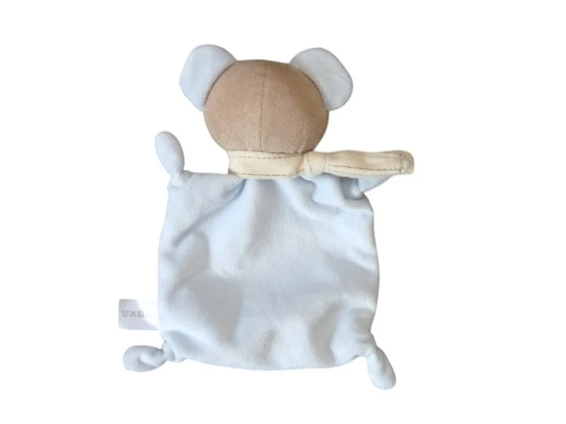 Ce doudou ours plat signé Nicotoy se distingue par son adorable design mêlant bleu, marron et une touche crème au niveau de son écharpe. Mesurant environ 22 cm, ce doudou plat est idéal pour réconforter bébé et devenir son allié câlin au quotidien. Doux et léger, il accompagne les instants de tendresse et les moments de repos.