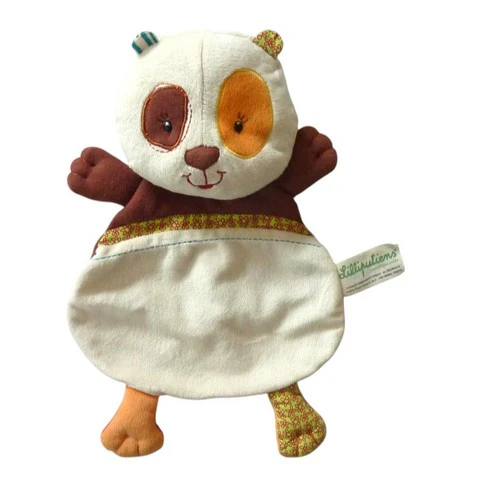 Ce doudou panda marionnette signé Lilliputiens séduit par ses couleurs chaleureuses et son design original. Avec ses 32 cm environ, ce doudou panda invite les tout-petits à la découverte sensorielle grâce à ses motifs fleuris et ses teintes beige, marron et orange. Son format marionnette permet aussi de nombreuses interactions rendant chaque moment câlin plus vivant et ludique. Un doudou Lilliputiens doux et malin en excellent état parfait pour accompagner bébé.