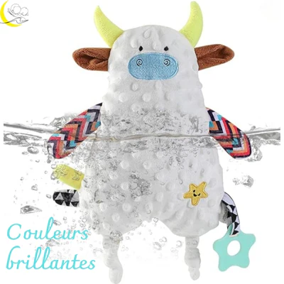 Notre doudou vache deviendra le complice parfait de votre bébé, lui offrant des moments de tendresse et de complicité de jour comme de nuit ✨
