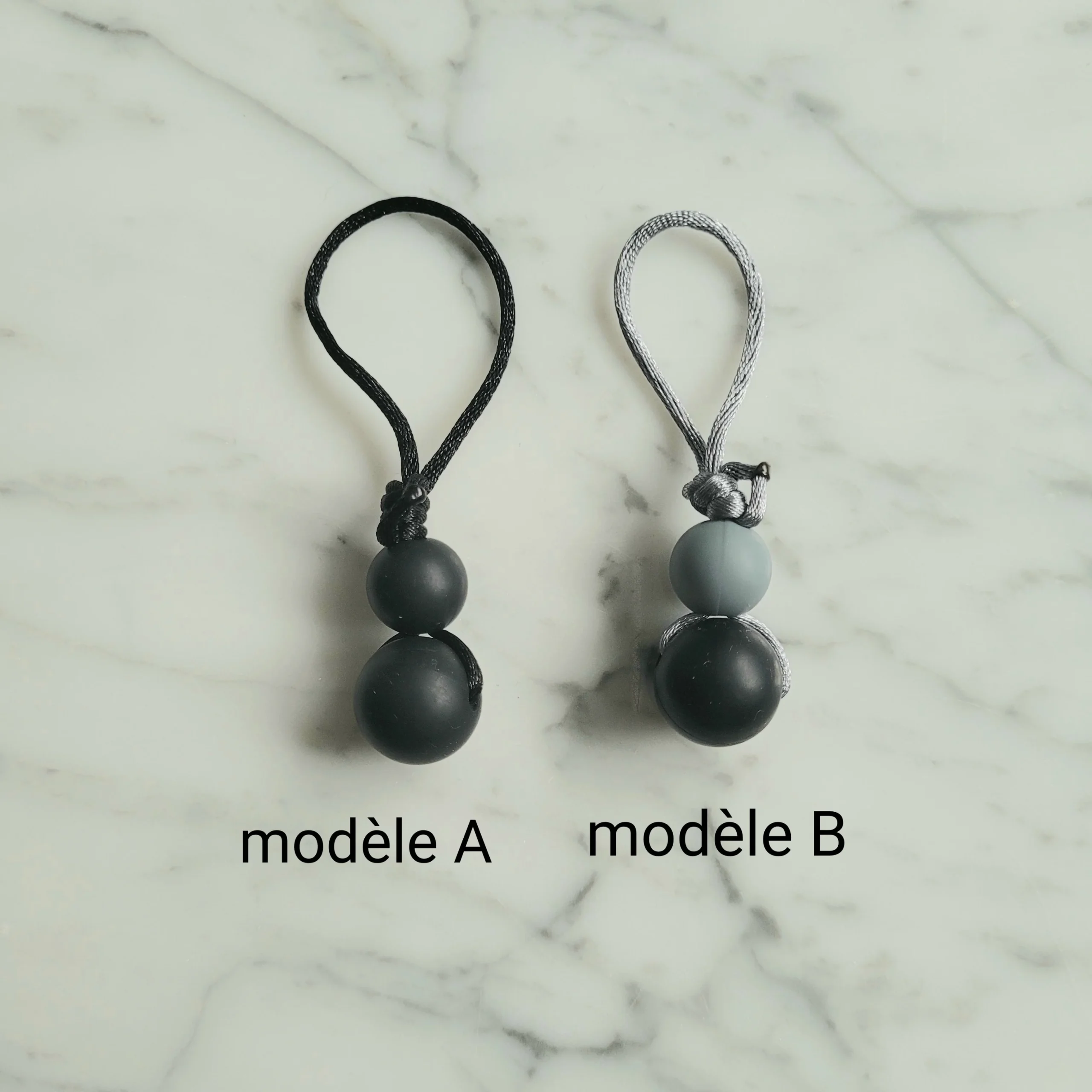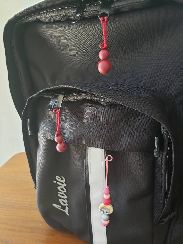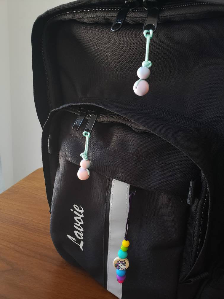 DUO de MINI tirettes pour fermeture éclair, ens. de 2 zipettes, aide-zip, identificateur de sac, accessoire sensoriel, bille de silicone