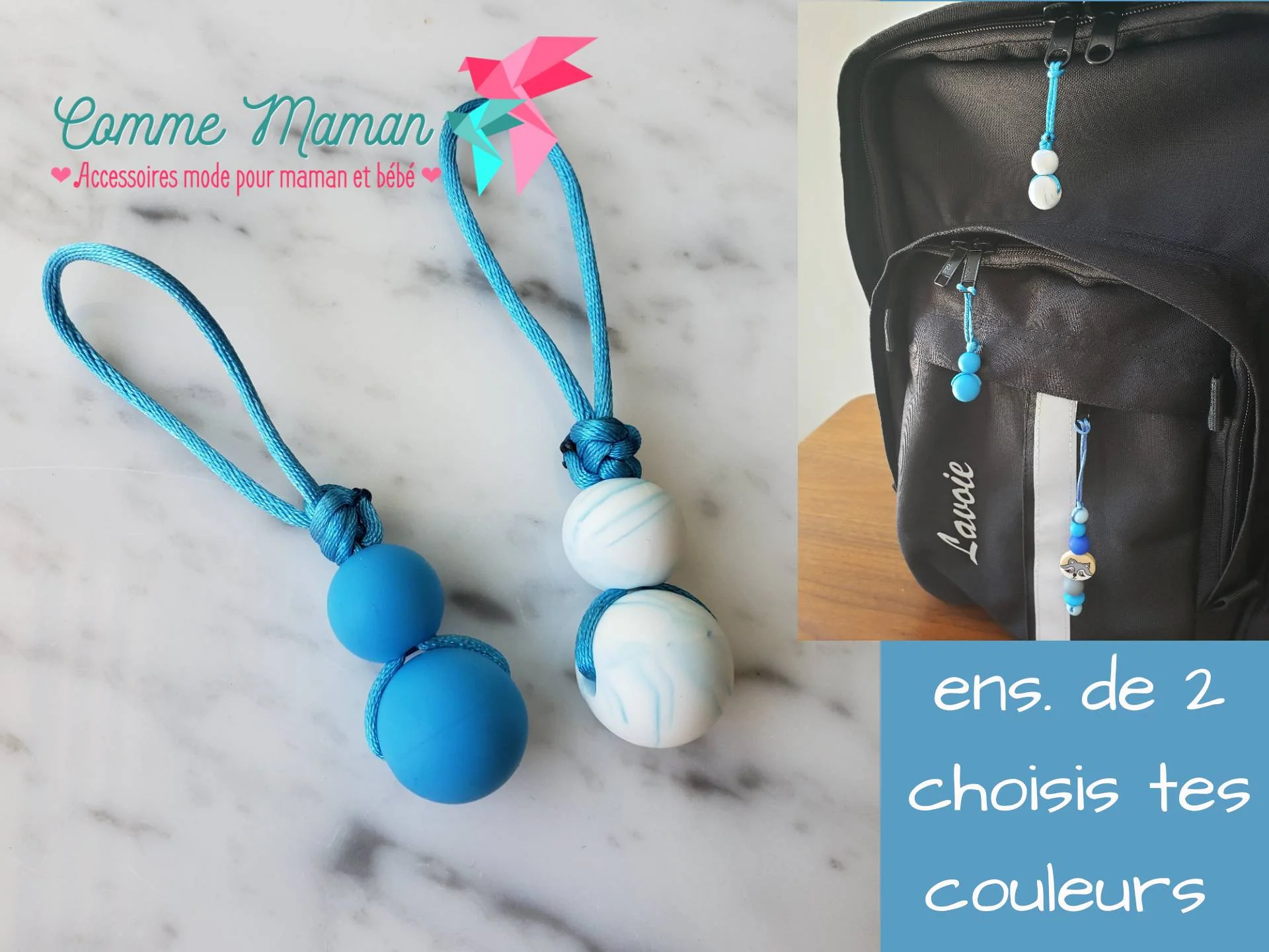 Comme Maman accessoires, vous propose une collection de tirettes pour fermeture éclair, pratique pour l’apprentissage de l’autonomie chez les petits. ou simplement pour personnaliser le sac d’école, étui, sac à main, manteau et autres.