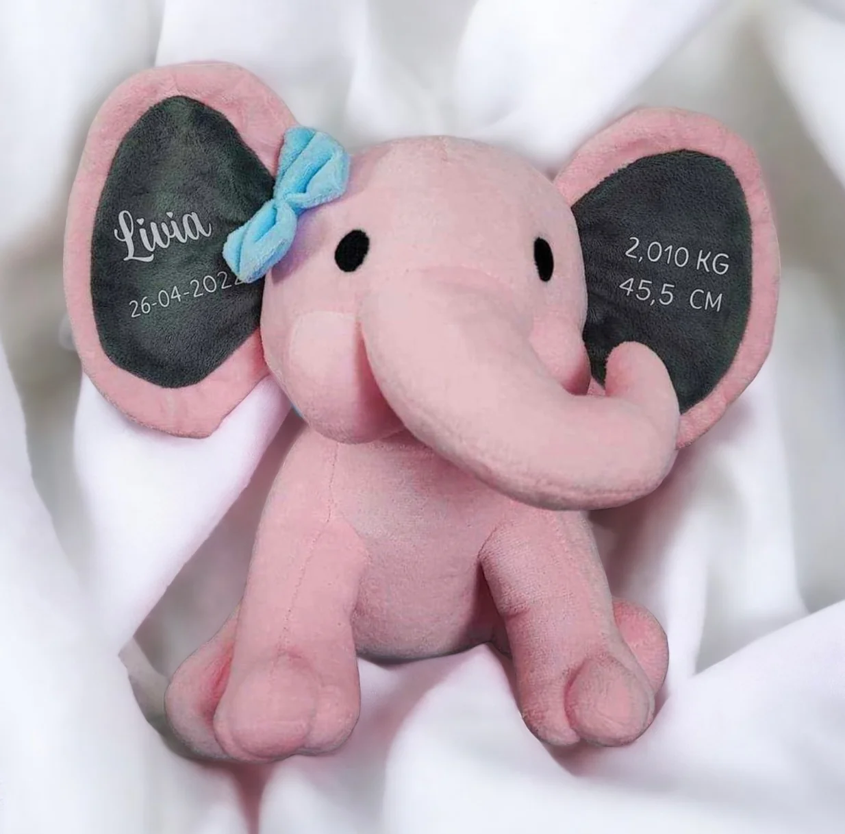o L’éléphant est disponible en 2 couleurs : rose ou gris