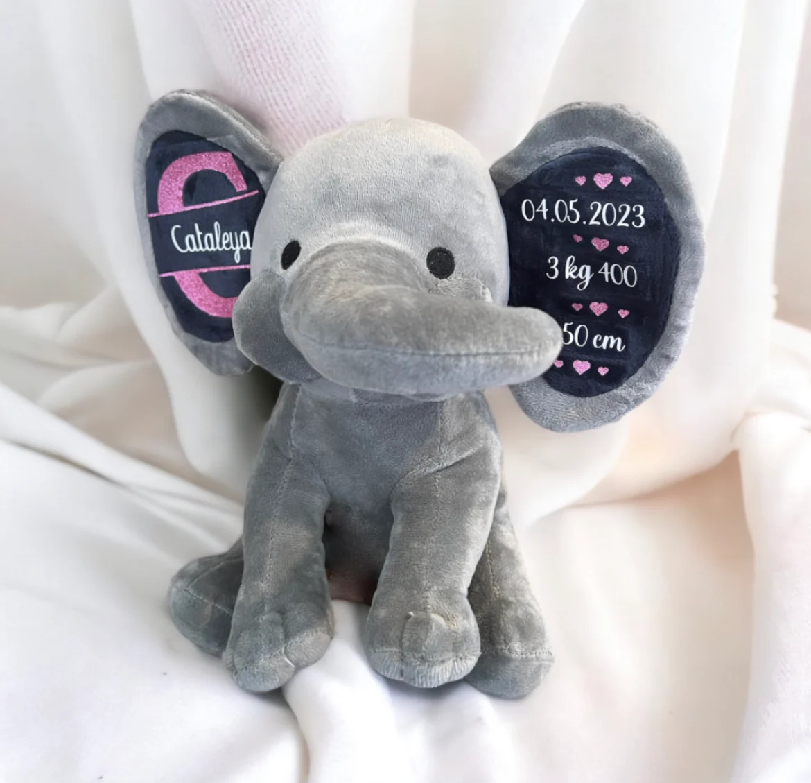 o Cet éléphant mesure environ 25cmo Les oreilles sont personnalisées à l’aide de vinyle de haute qualité et pressées avec une presse à chaleuro L’éléphant est disponible en 2 couleurs : rose ou gris o La couleur du vinyle peut être choisie lors du passage de la commandeo Veuillez noter que ces éléphants ne sont […]
