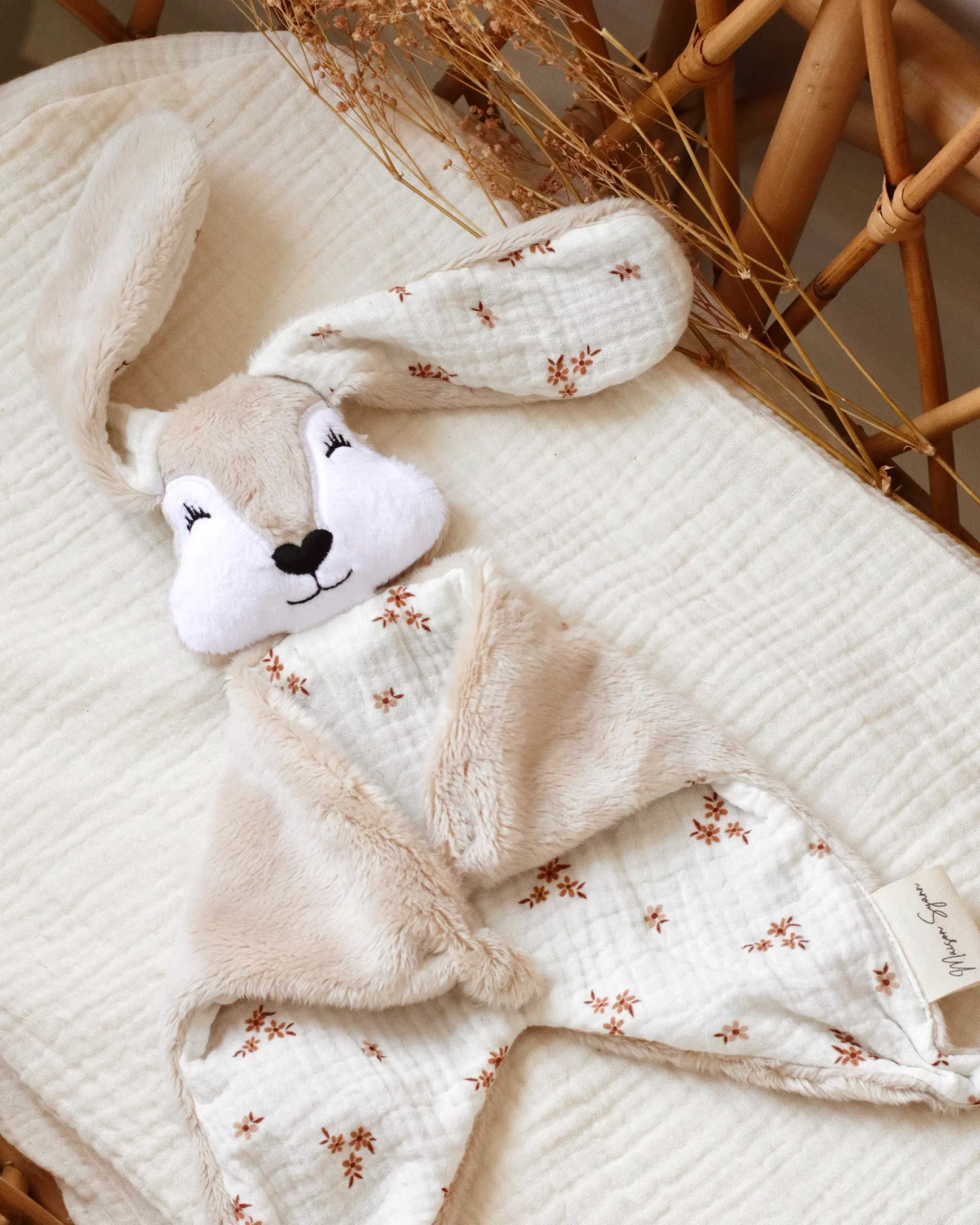 Je vous présente le doudou plat Gabin le lapin. Sa bouille n’est pas trop mignonne ? Vous pouvez le personnaliser au grés de vos envies pour qu’il devienne le compagnon idéal de bébé. Sélectionnez les tissus en fonction de l’univers dans lequel vous souhaitez l’accueillir.