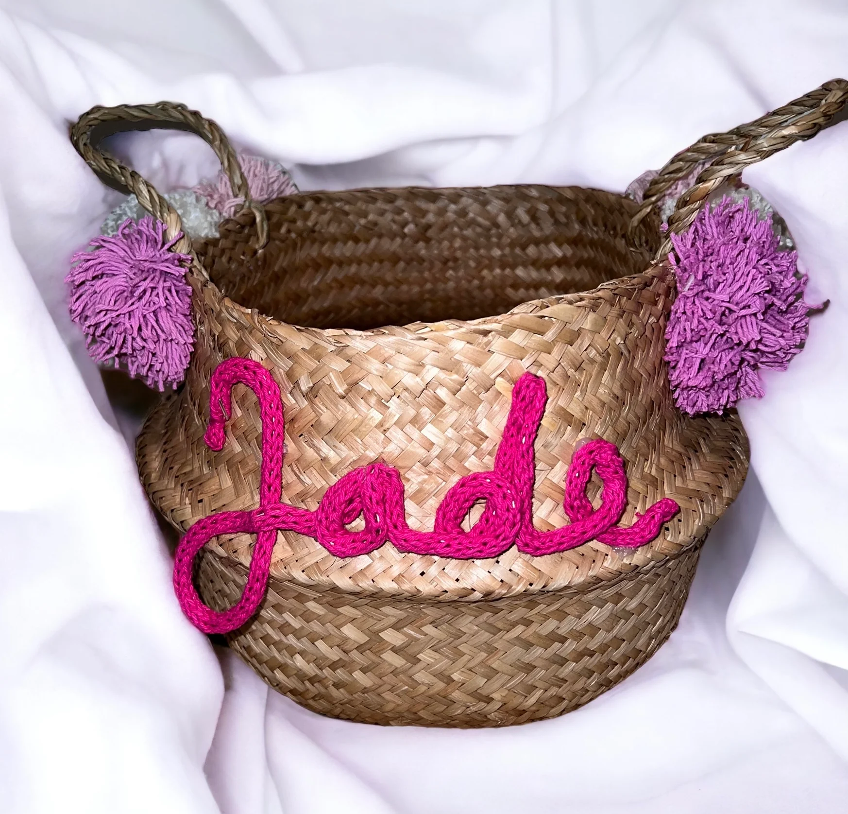 Vous souhaitez un rangement personnalisé dans votre maison ou chambre d’enfant ?En plus d’être utile, ce panier en jonc de mer tressé amène une touche de décoration ! Il vous suffit de m’indiquer :– la taille du panier– la couleur du prénom ou mot– la couleur des pompons Si vous souhaitez une autre couleur ou […]