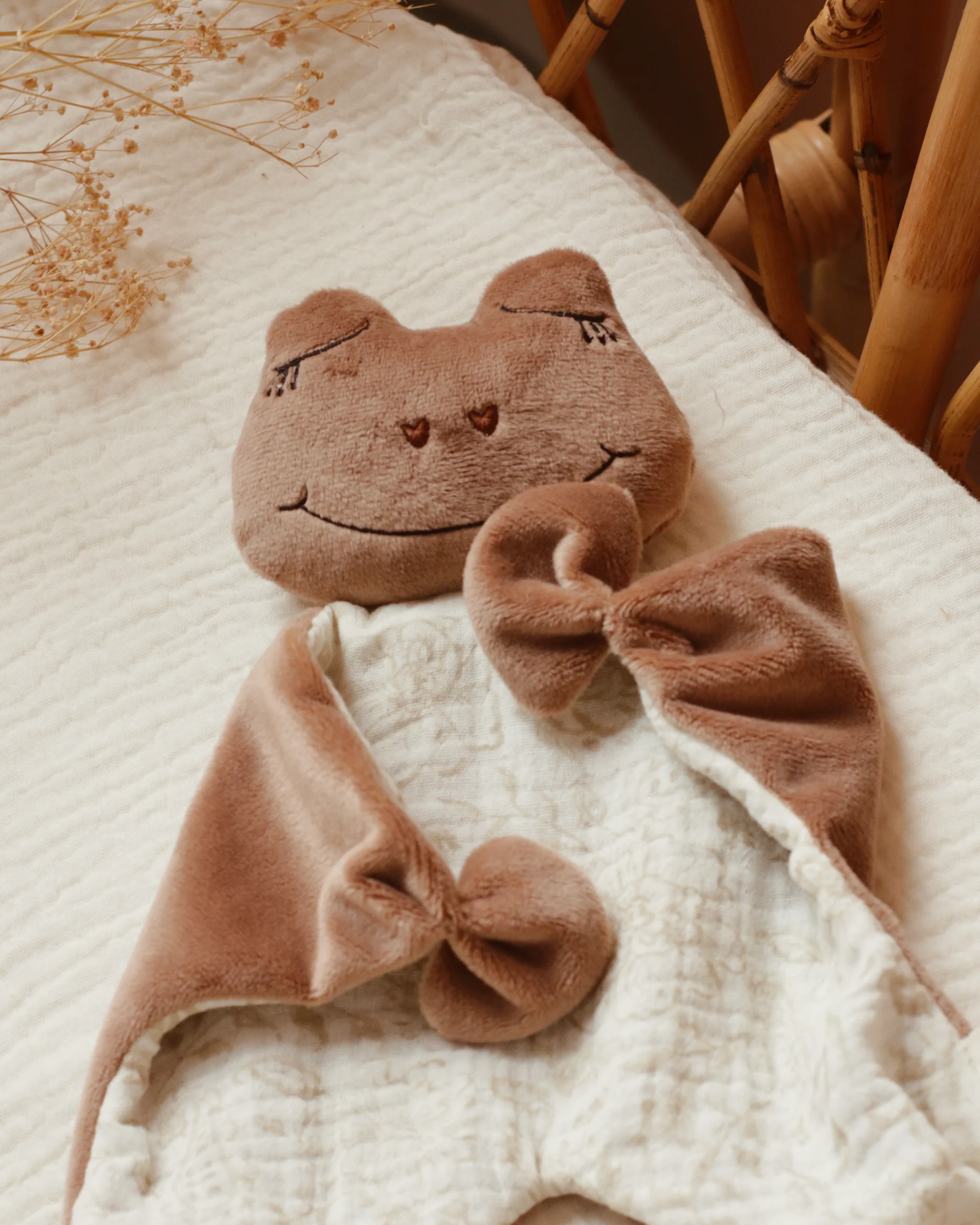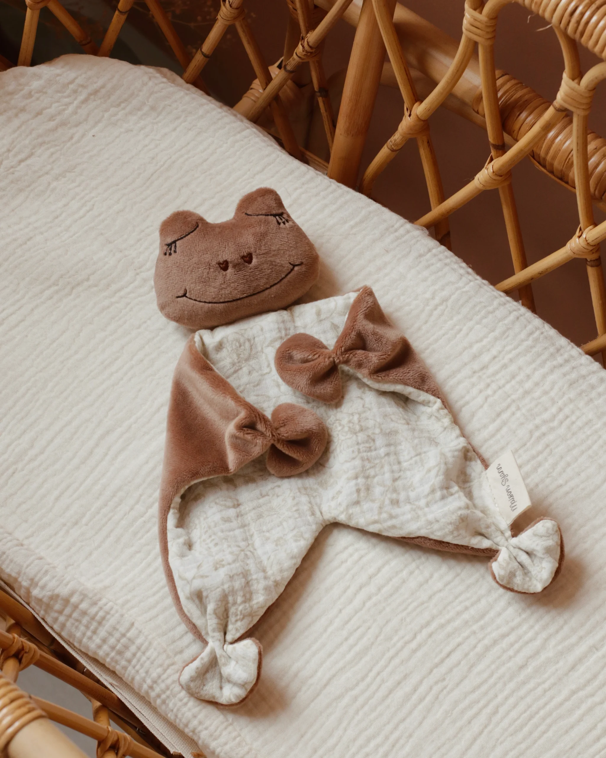 Vous pouvez personnaliser votre doudou en faisant broder le nom du futur propriétaire ou un petit mot. Vous pouvez également y ajouter l’option attache tétine pour que bébé n’égare pas sa tétine.