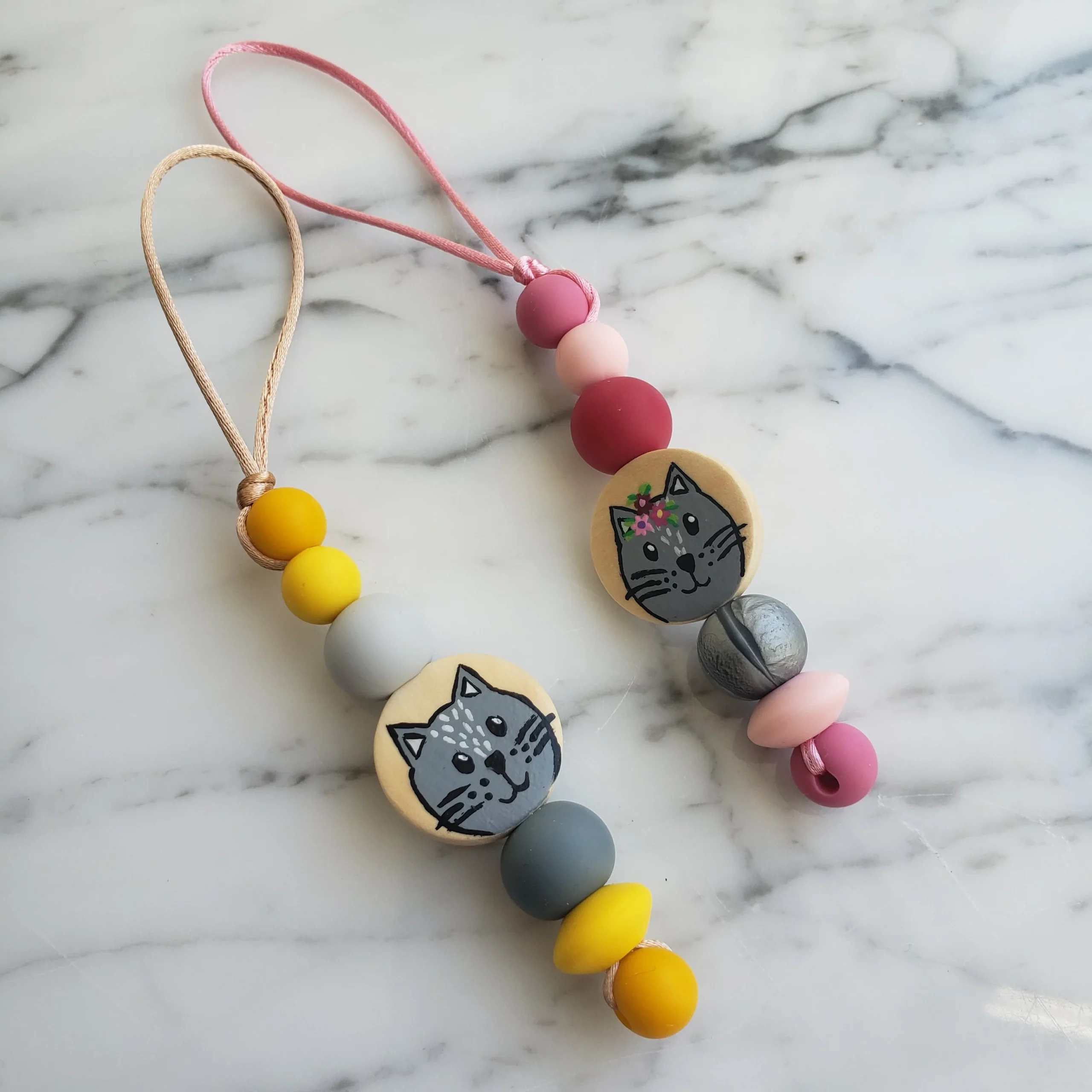 Les identificateurs sont peint à la mais sur une pastille de bois et de billes de silicone de qualité, faites de 100% de silicone alimentaire sans BPA, sans PVC, sans Phtalates, sans plomb, sans mercure et sans cadmium