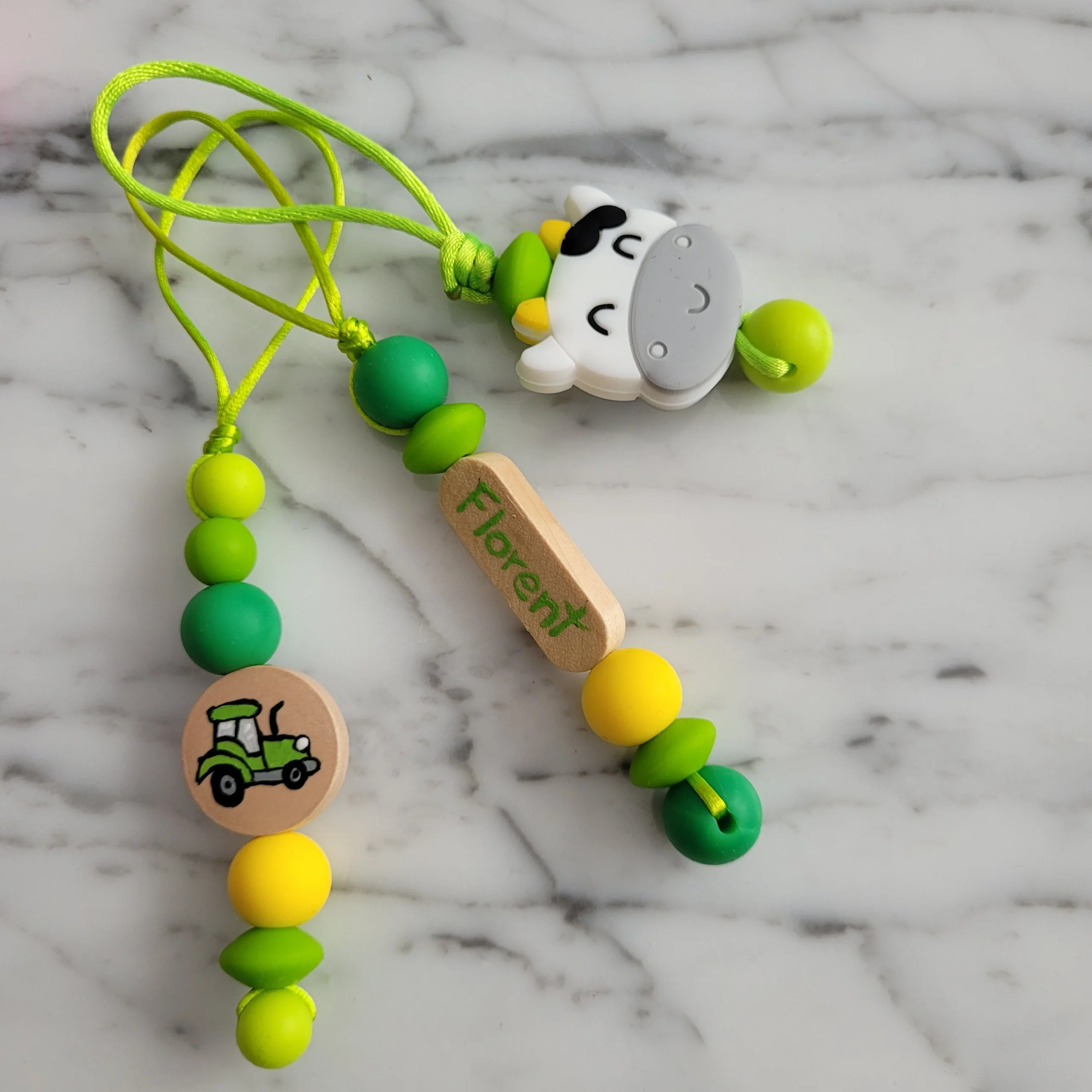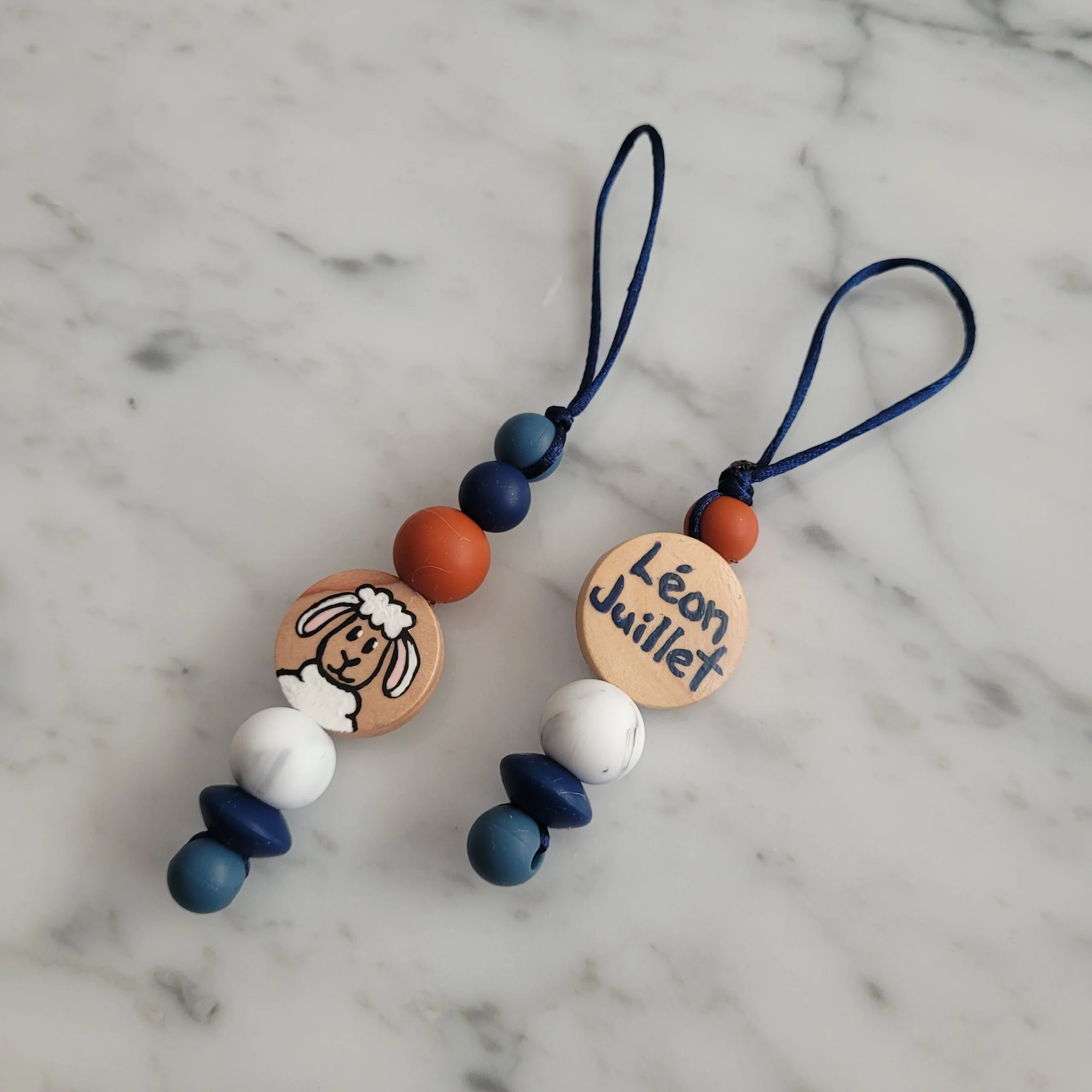 Les identificateurs sont peint à la mais sur une pastille de bois et de billes de silicone de qualité, faites de 100% de silicone alimentaire sans BPA, sans PVC, sans Phtalates, sans plomb, sans mercure et sans cadmium