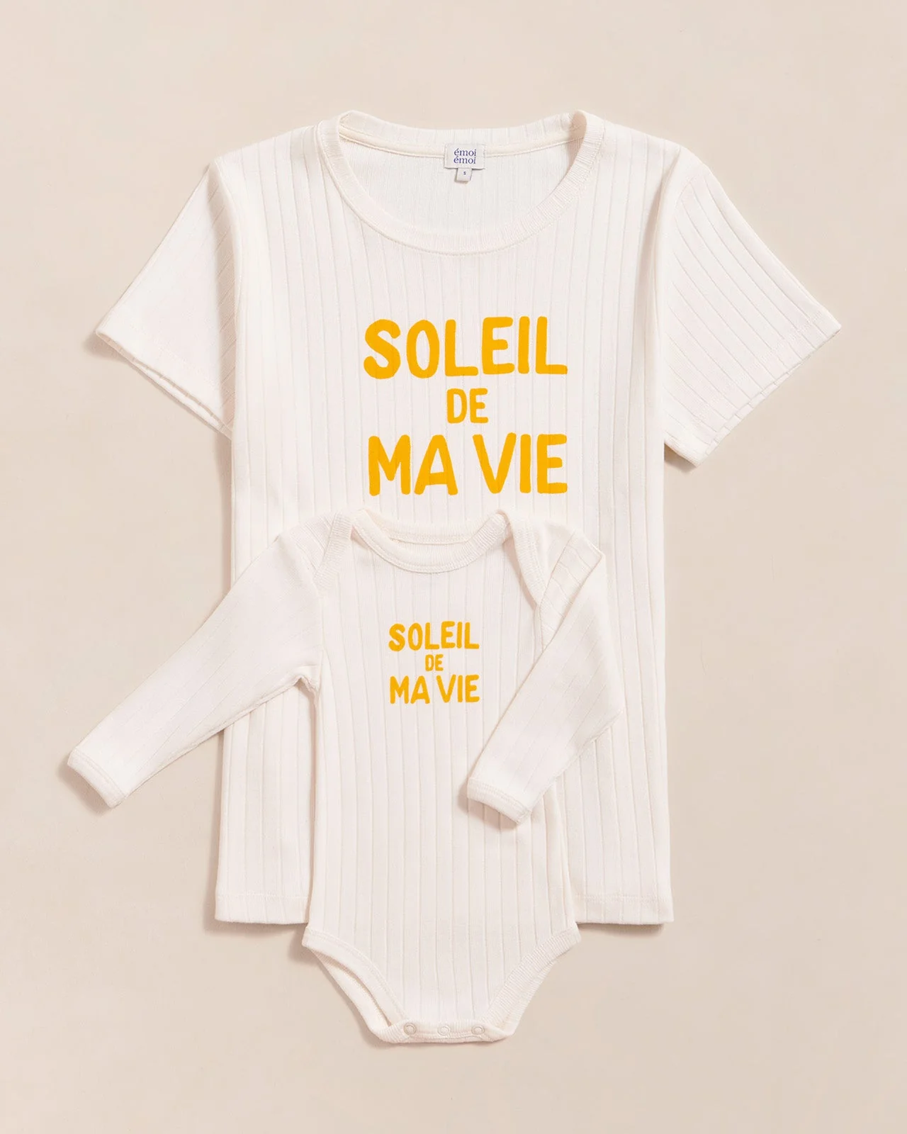 Le body et le t-shirt Soleil de ma vie en coton bio – crème