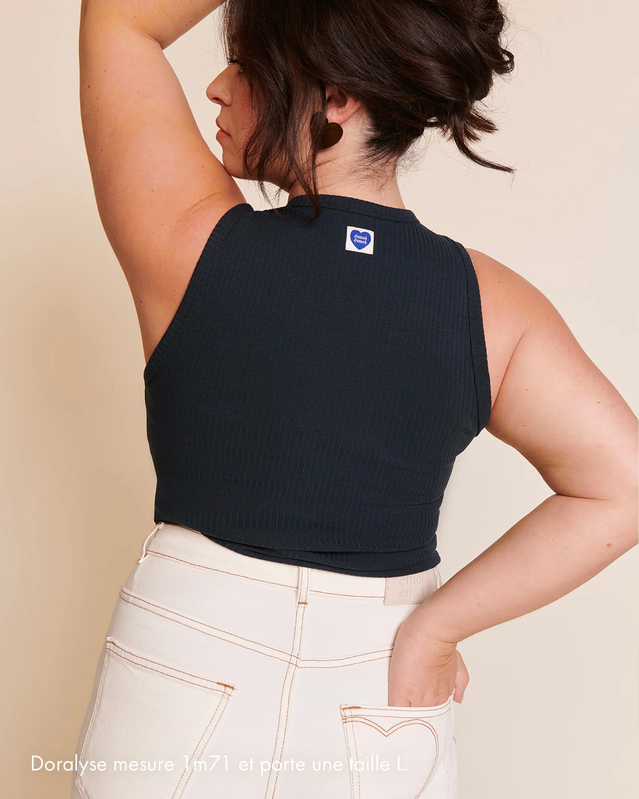 Notre débardeur Debra taille normalement et se porte près du corps.