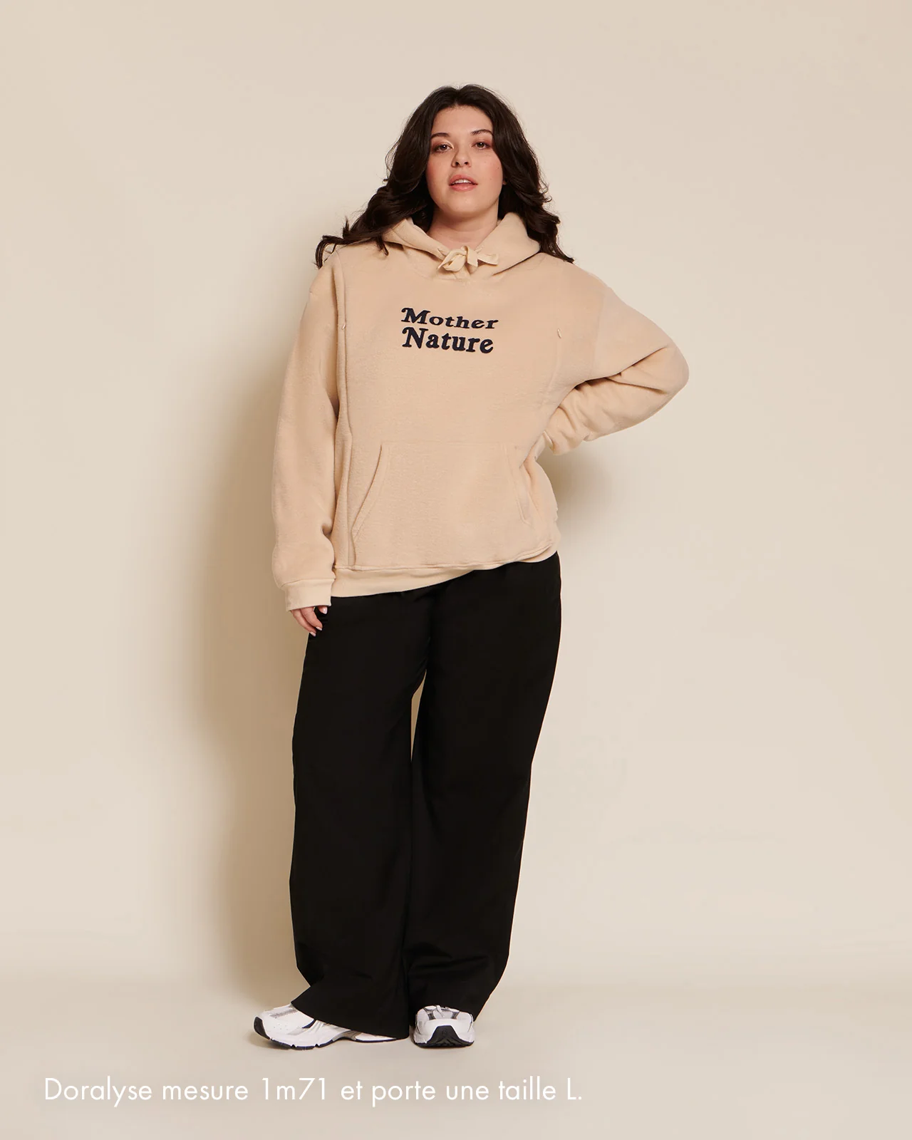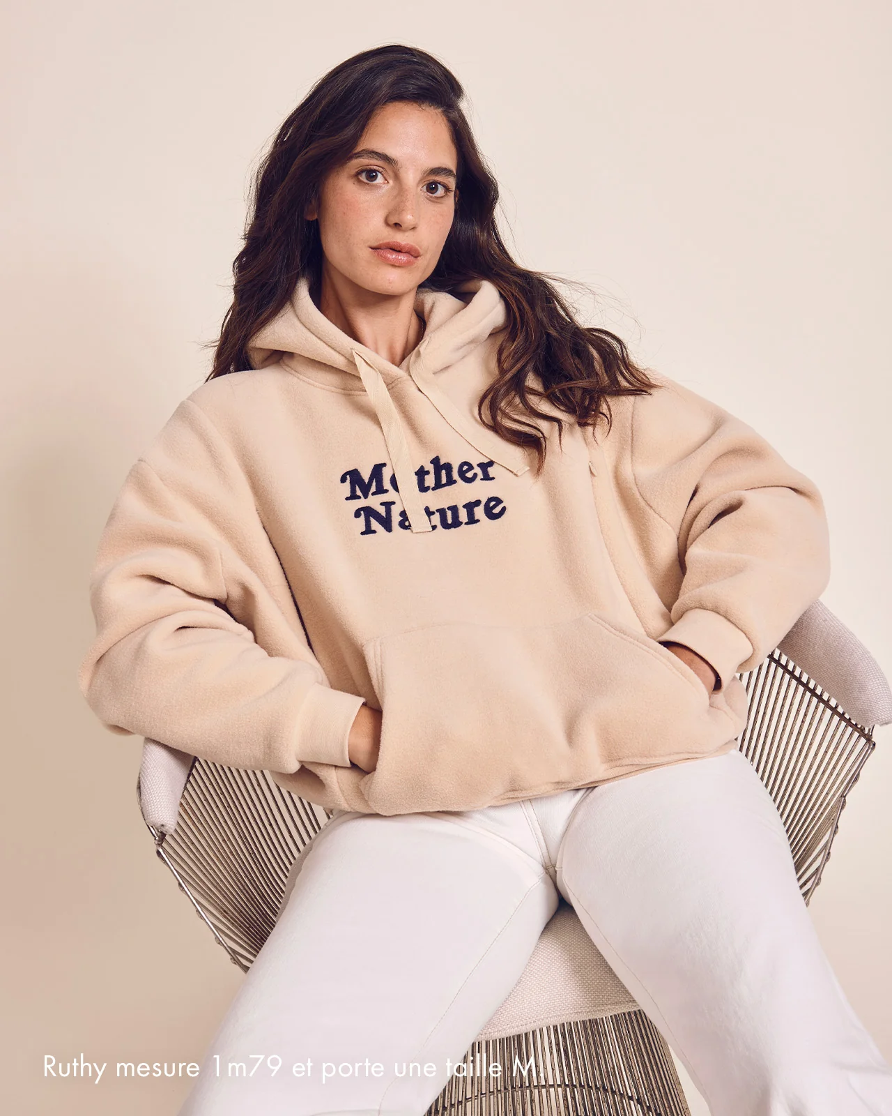 Le hoodie d’allaitement Mother Nature en polaire recyclée – latte